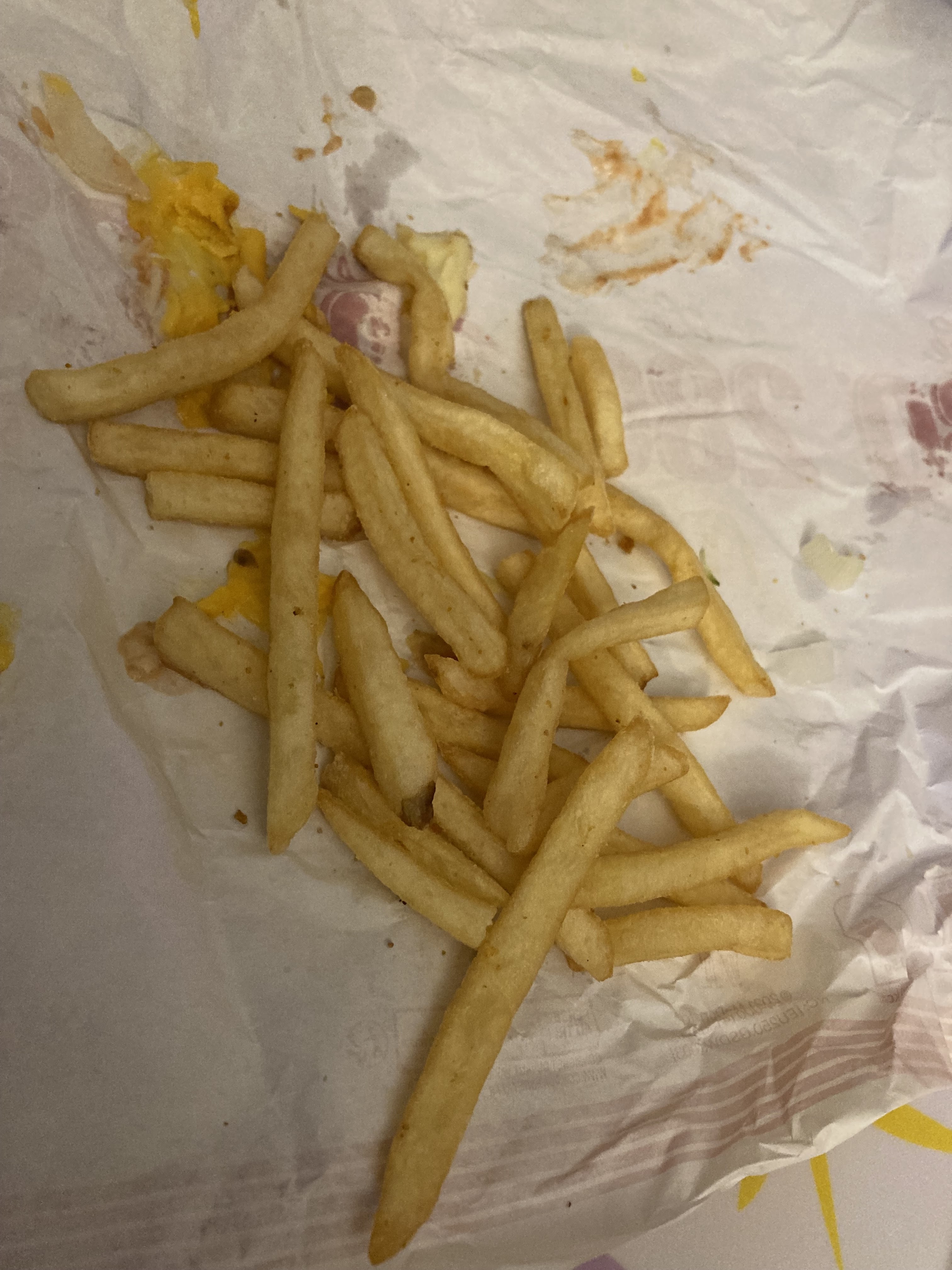 La semaine dernière happy meal oublié et ce soir les frites ! On commence à être déçu du drive !