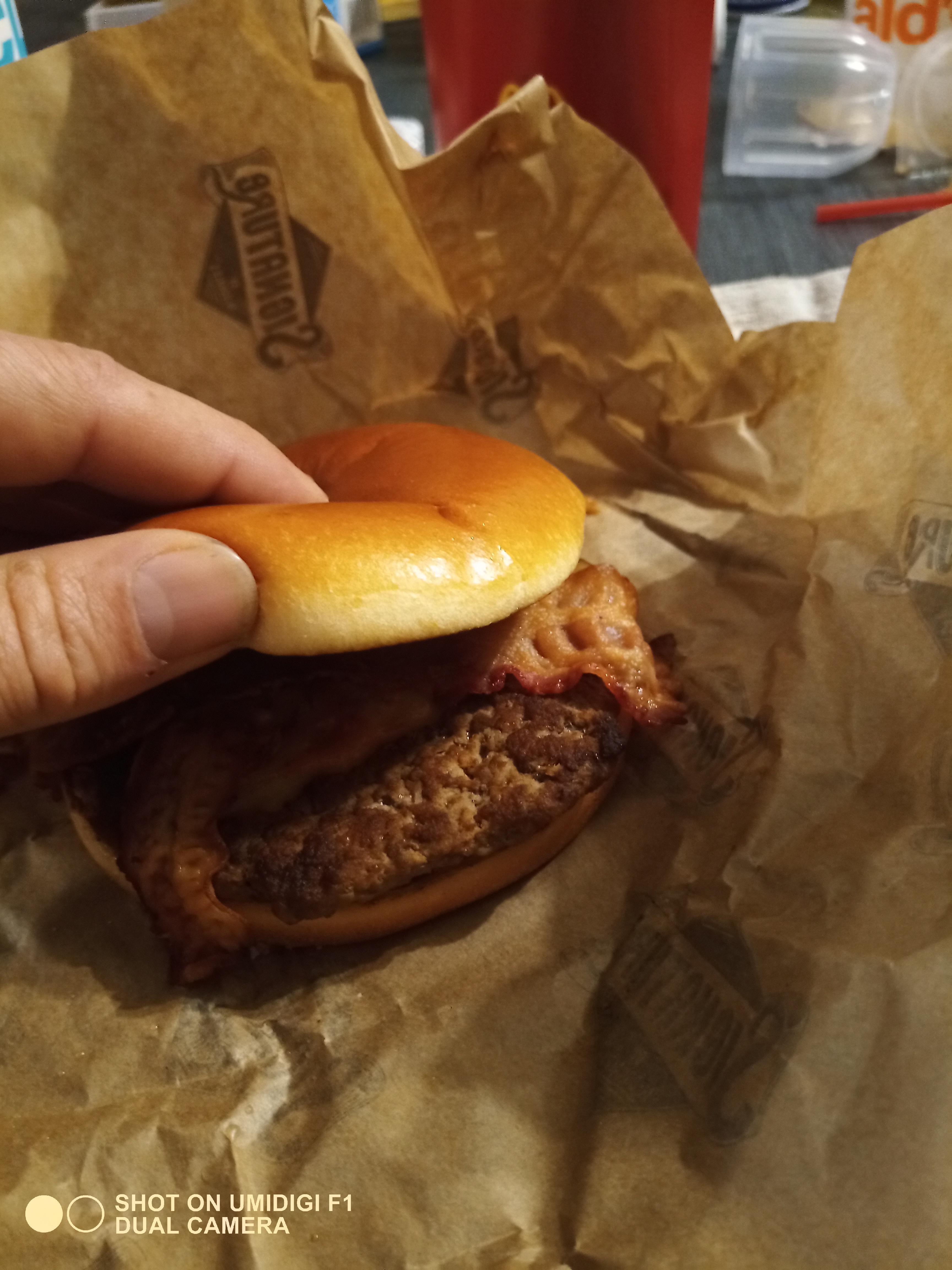 Commande d'un burger+ petit frite+une boisson... pour prendre un en-cas rapide... loupé ! 25mn d'attente pour une vente à emporter. Je ne sais pas quoi en penser!... c'était trop long pour aujourd'hui !!