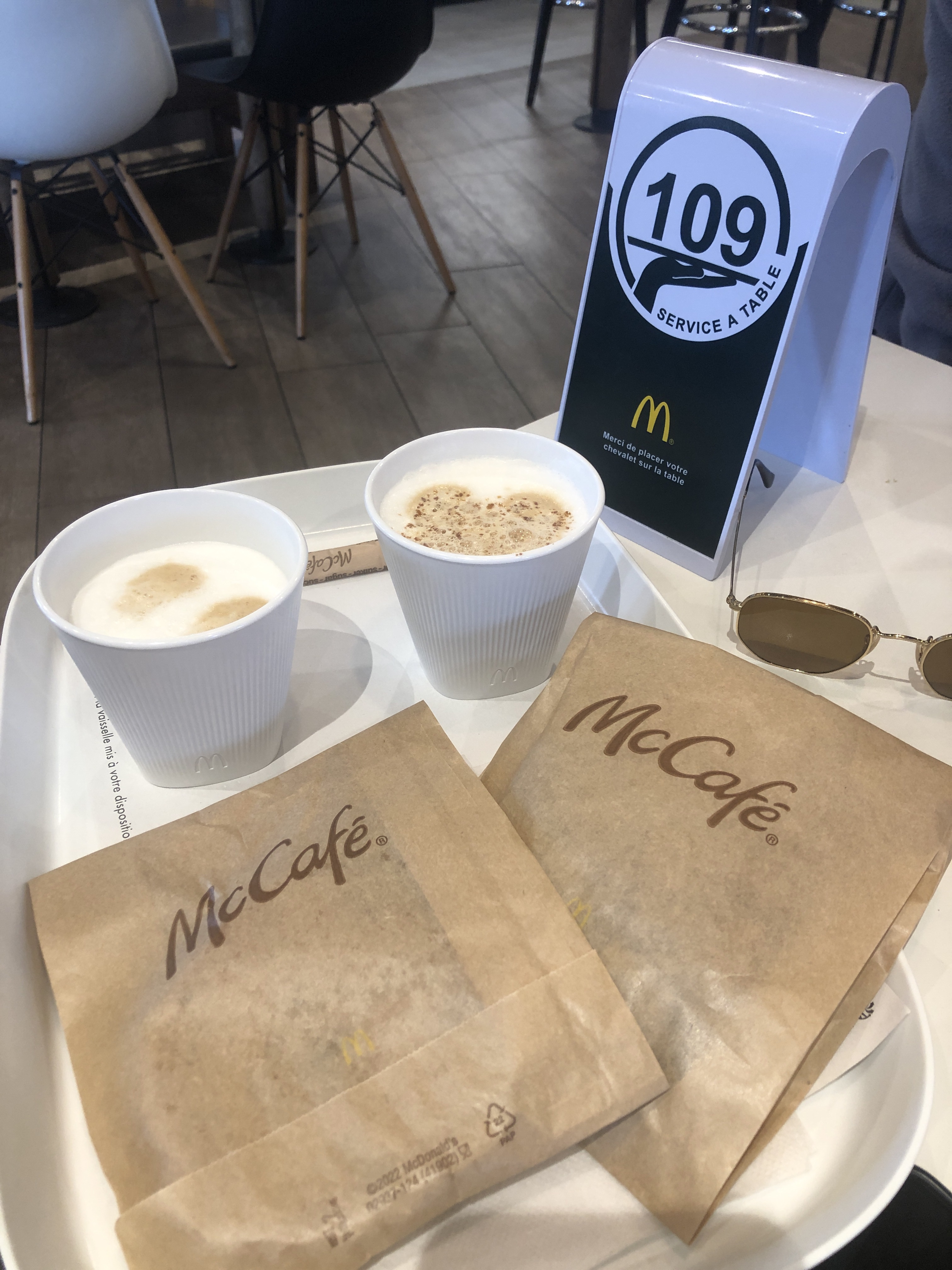 Nous y sommes allés pour le goûter. 2 commandes à la même table. 1 ère commande un capuccino servi froid et une glace fondue. 2 ème commande un egg mcmuffin avec 3 glace et un café. Les 3 glaces étaient fondues et le café froid. La règle de base chez mcdo: on prépare le froid et les boissons chaudes lorsque le chaud est prêt ! On a dû tout faire refaire....