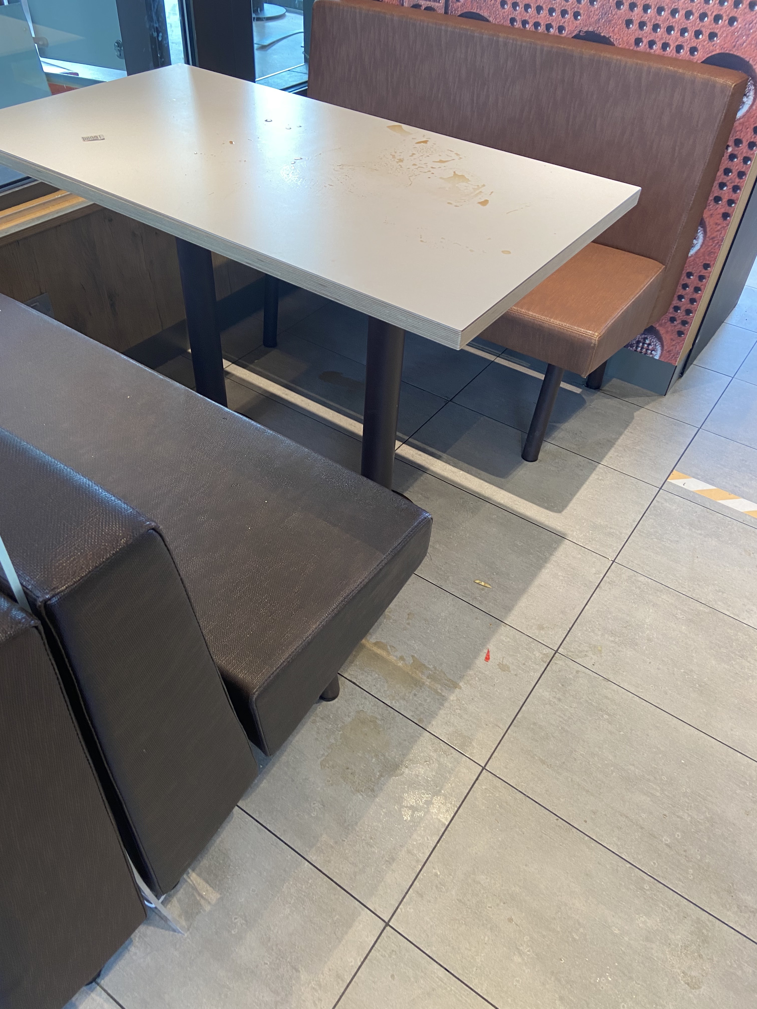 Personnel exécrable, les tables et le sol ne sont pas du tout nettoyés, un macdo très sale et pas aimable