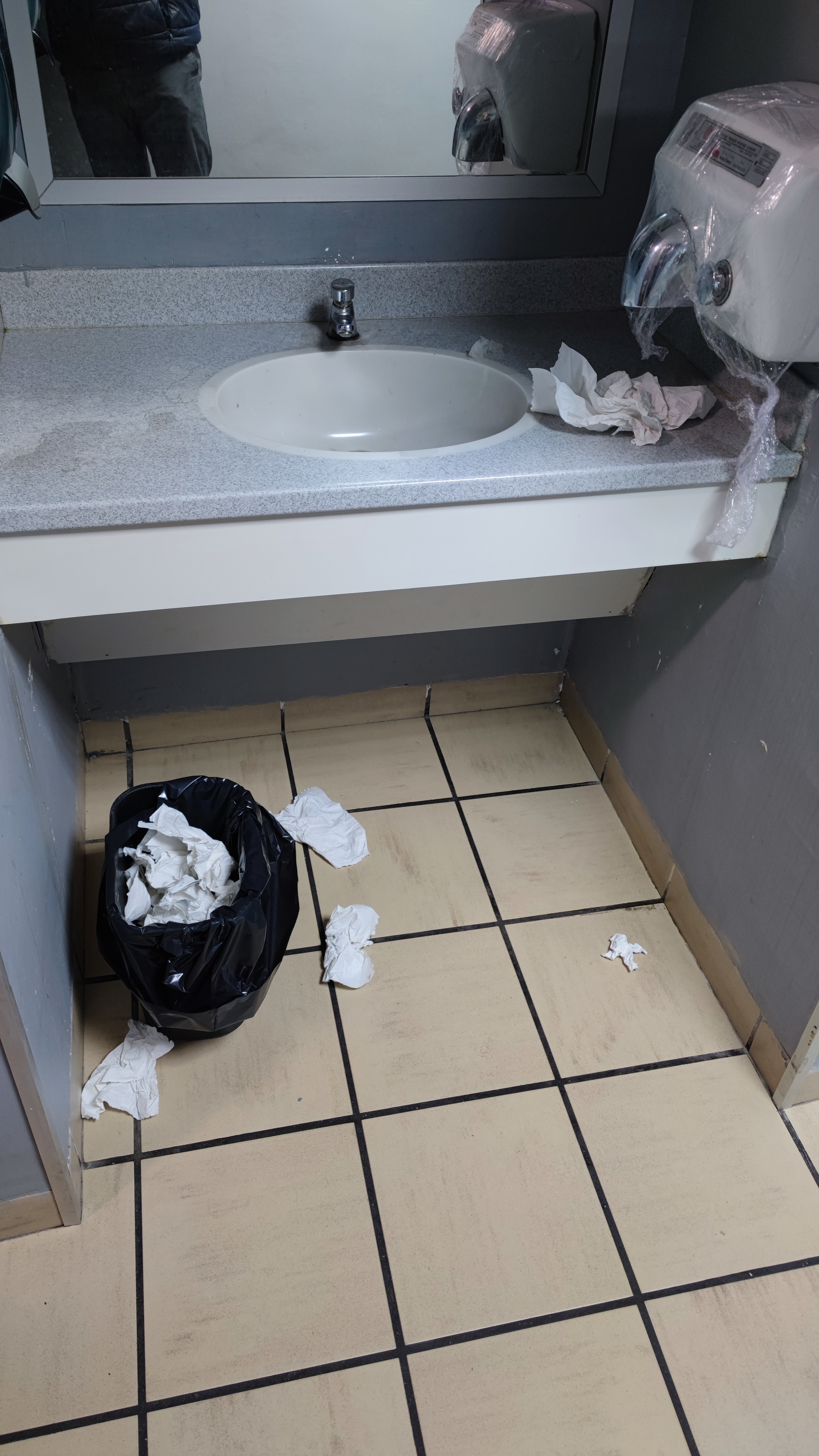 35 min pour 2 burgers en menu. Rien de compliqué, mais les employés préfèrent papoter plutôt que de travailler. Une fois la commande récupérée, on monte à la salle et au plus on monte, au plus l’odeur prend le nez. Un mélange d’urine et de transpiration, accompagné d’un sol mi luisant, mi collant. Poubelles pleines à craquées (photo). Pas de poulet, ni de glace, ce qui réduit énormément le choix du menu. On n’y remettra jamais les pieds.