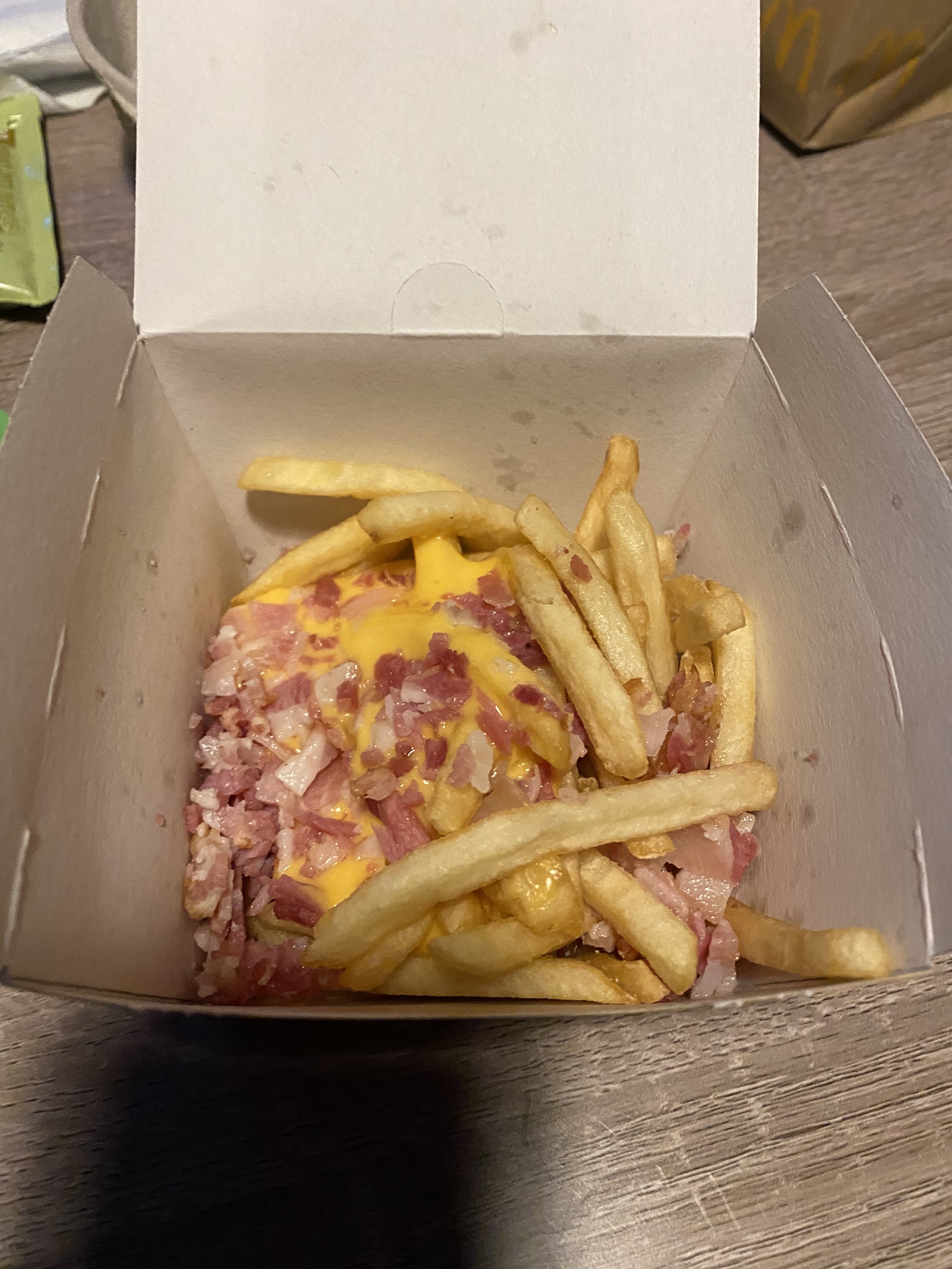 Sandwich qui semble s'être fait éjecté sur l'autoroute à 130km/h ou écrasé par un semi remorque au choix. Erreur de commande incessante au drive ça en deviens une blague Manque de boisson, erreur dans les frites, jouet 3 fois identique. Il n'y a plus de badoit, plus d'eau, plus de sprite,mais de l'eau du robinet à 2€95. Dégradation importante de la qualité du Mac Donald Voici un maxi potatoes à 3€30 👍👌