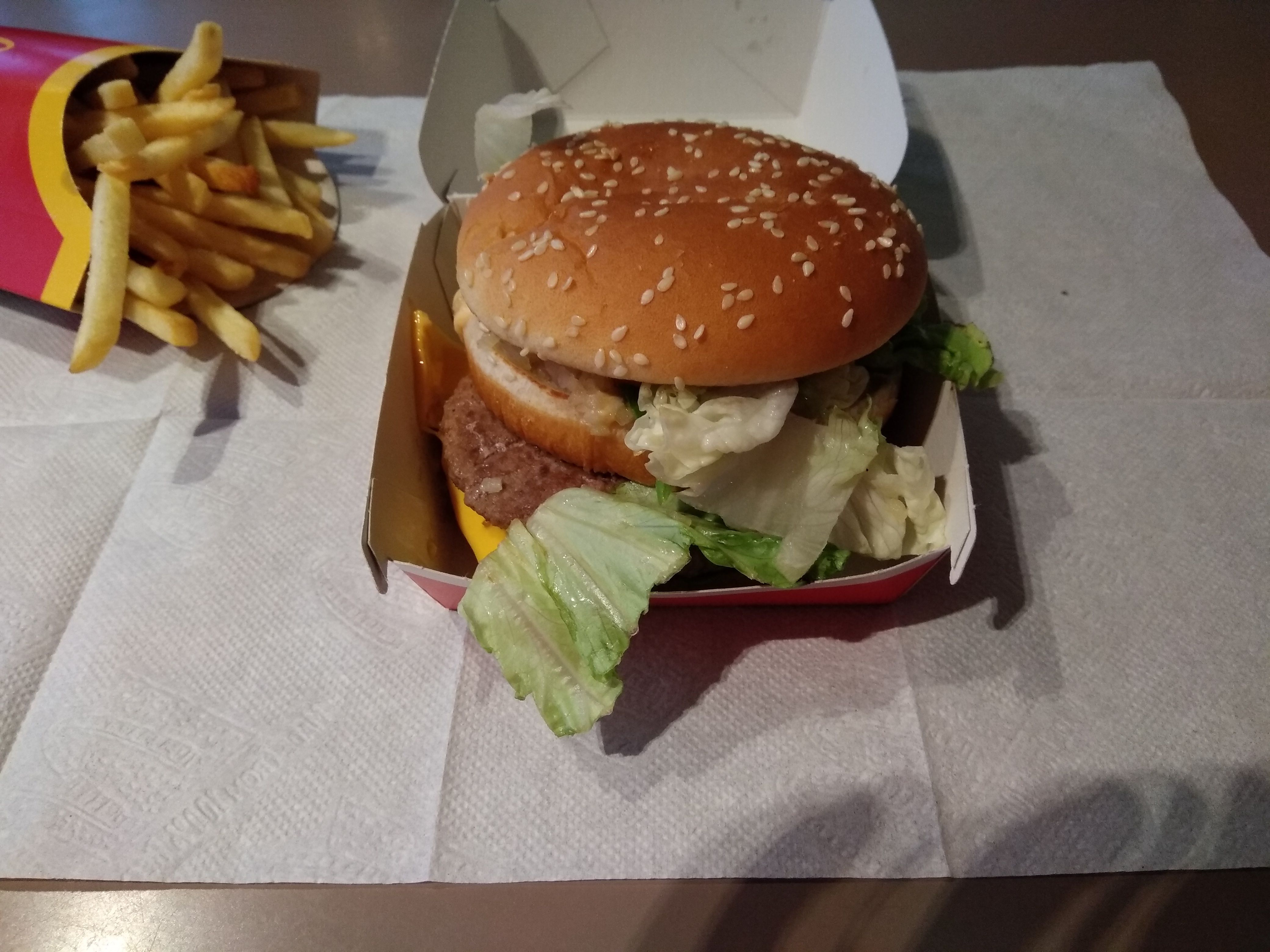 Les frites étaient bien frites, par contre les hamburgers n'étaient pas de Hambourg. Nous reviendrons néanmoins lorsque nous sentirons nos corps un peu trop sains, ou à la faveur d'une flemme dominicale prononcée en début de soirée. Mais sinon c'était bon, pour un macdo, et la commande conforme même si au fil des années il y eut des pépins et autres erreurs.