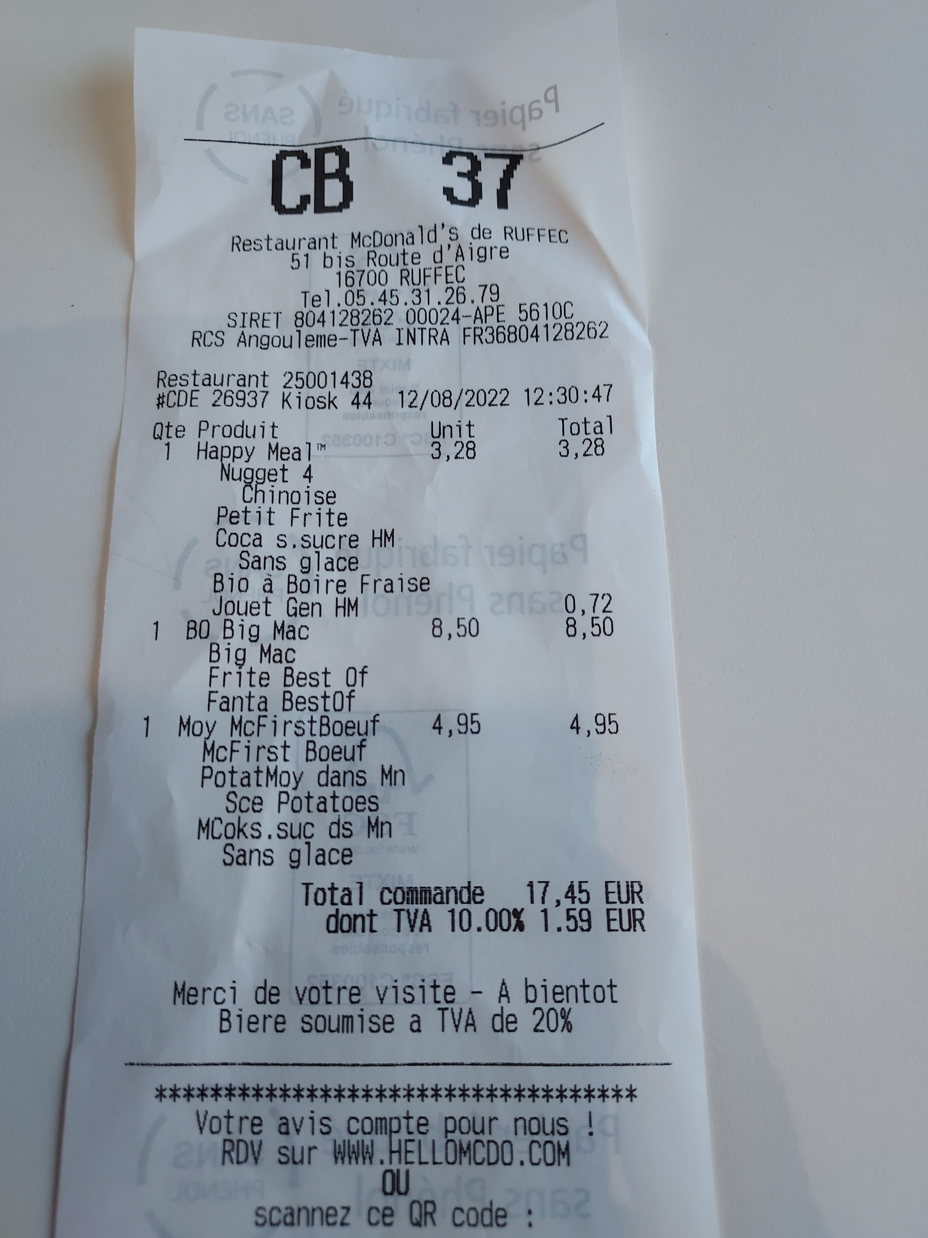 Macdonald’s correct, par contre friteuses mortes à changer. J’y suis allé 10 fois depuis juillet, les frites sont toujours froides, pas agréable pour manger ! Incompréhension la plus totale sachant que les restaurants de Rivières et Champniers vous servent les frites bouillantes.
