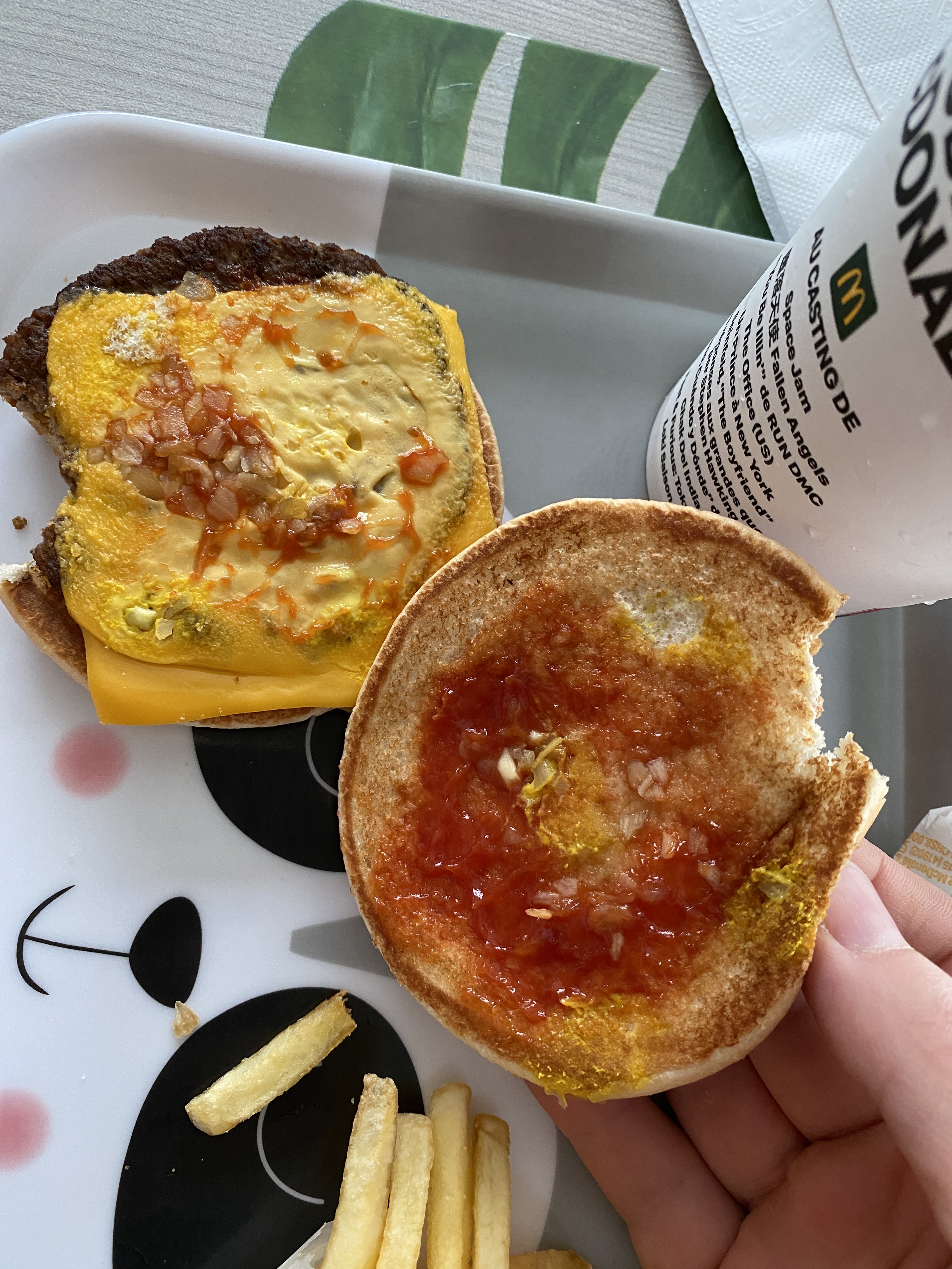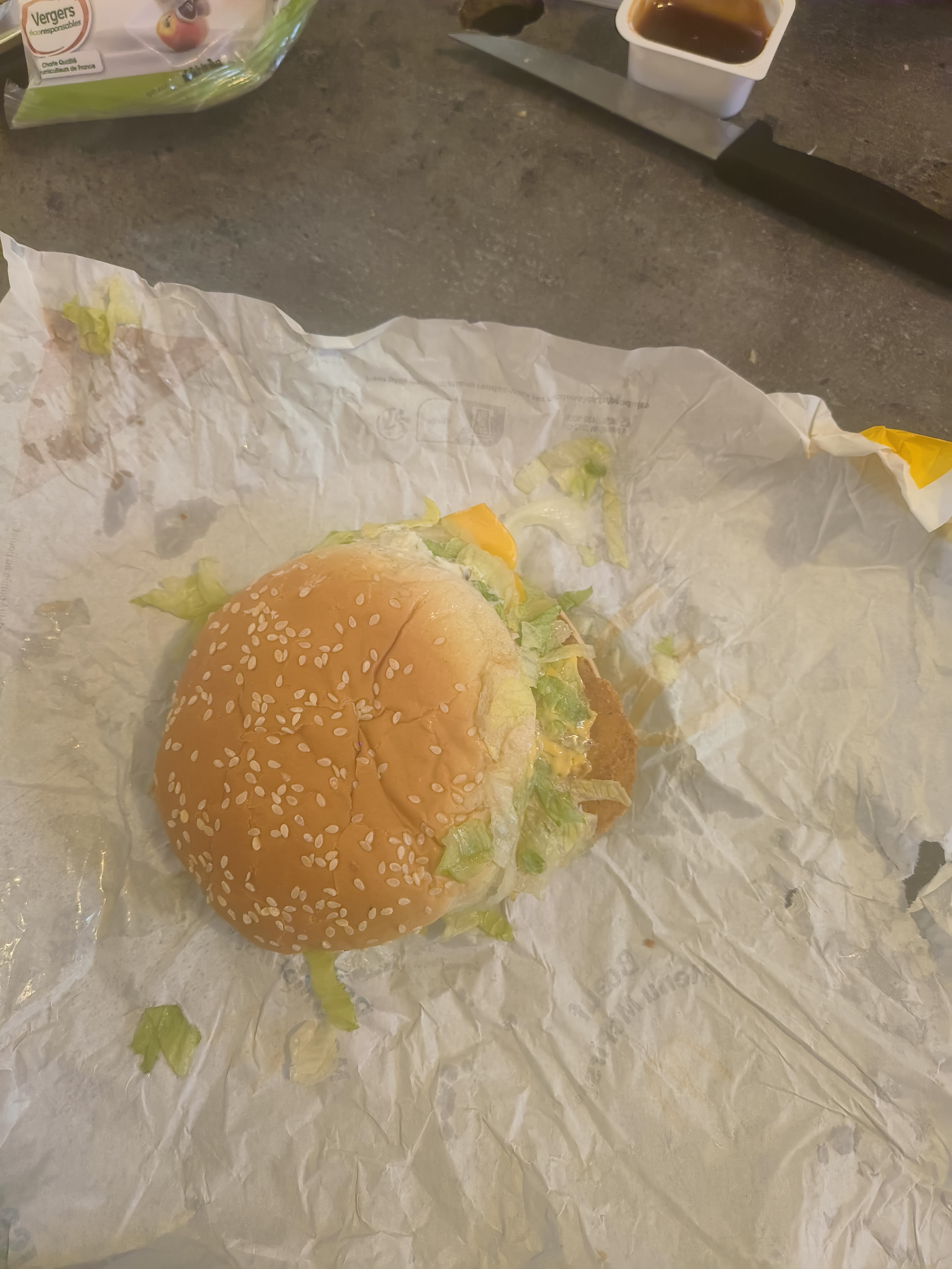 Il manquait la viande dommage.... Un oublie somme toute important et mon double cheese bacon c'est transformé en triple cheese sans cornichons