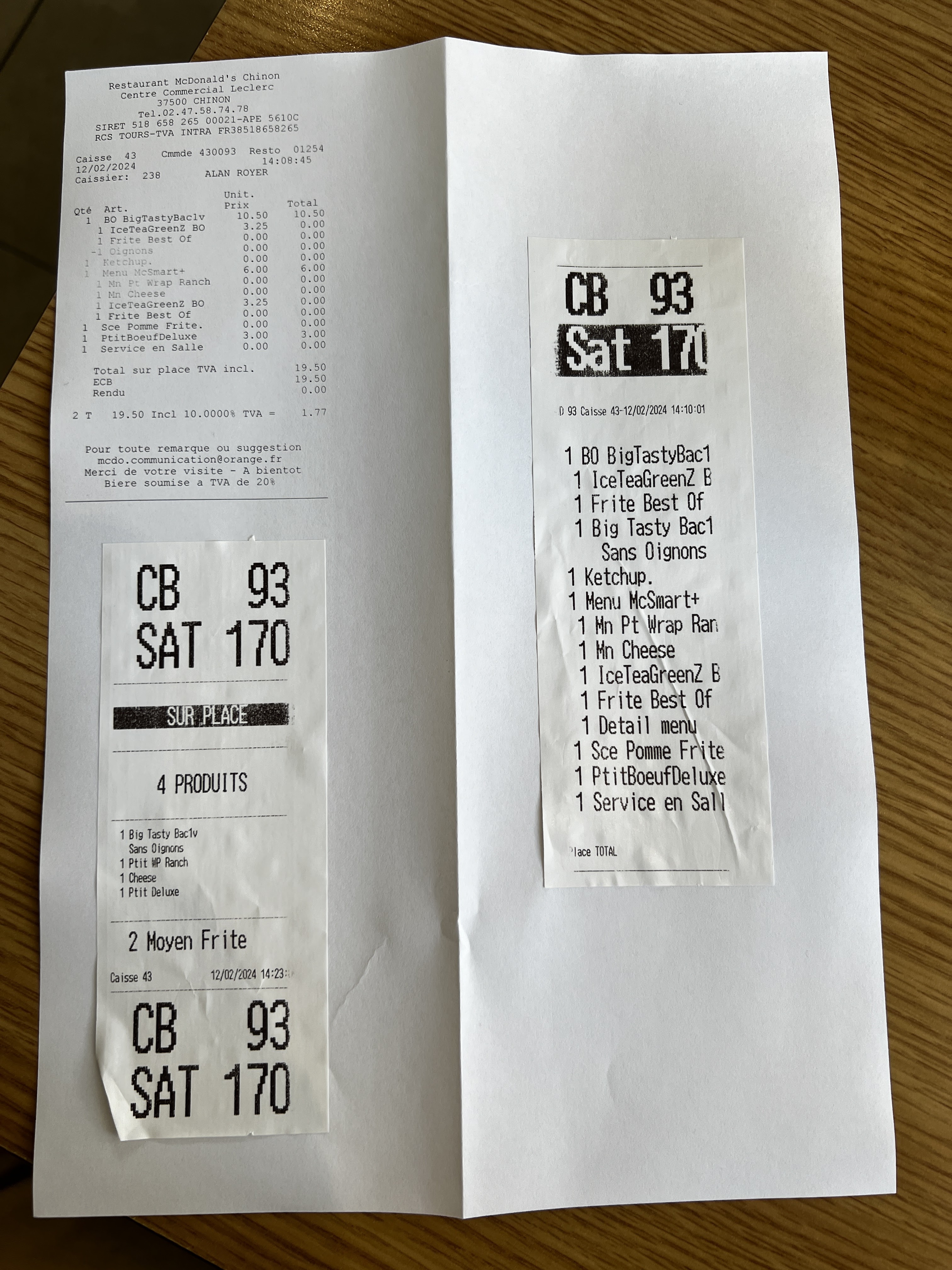 21:30 un vendredi soir, il y a 10 véhicules au drive. Mais ça ne va pas assez vite en cuisine. Par contre je comprends pas comment on peut attendre aussi longtemps et avoir des frites froides. So on attend, c'est qu'ils cuisinent. Ah et bien sûr. Comme d'hab, il manque un morceau de commande. Il serait peut être temps de payer correctement pour garder les compétences et arrêter le turn over de ceux qui bossaient bien. C'est de pire en pire.