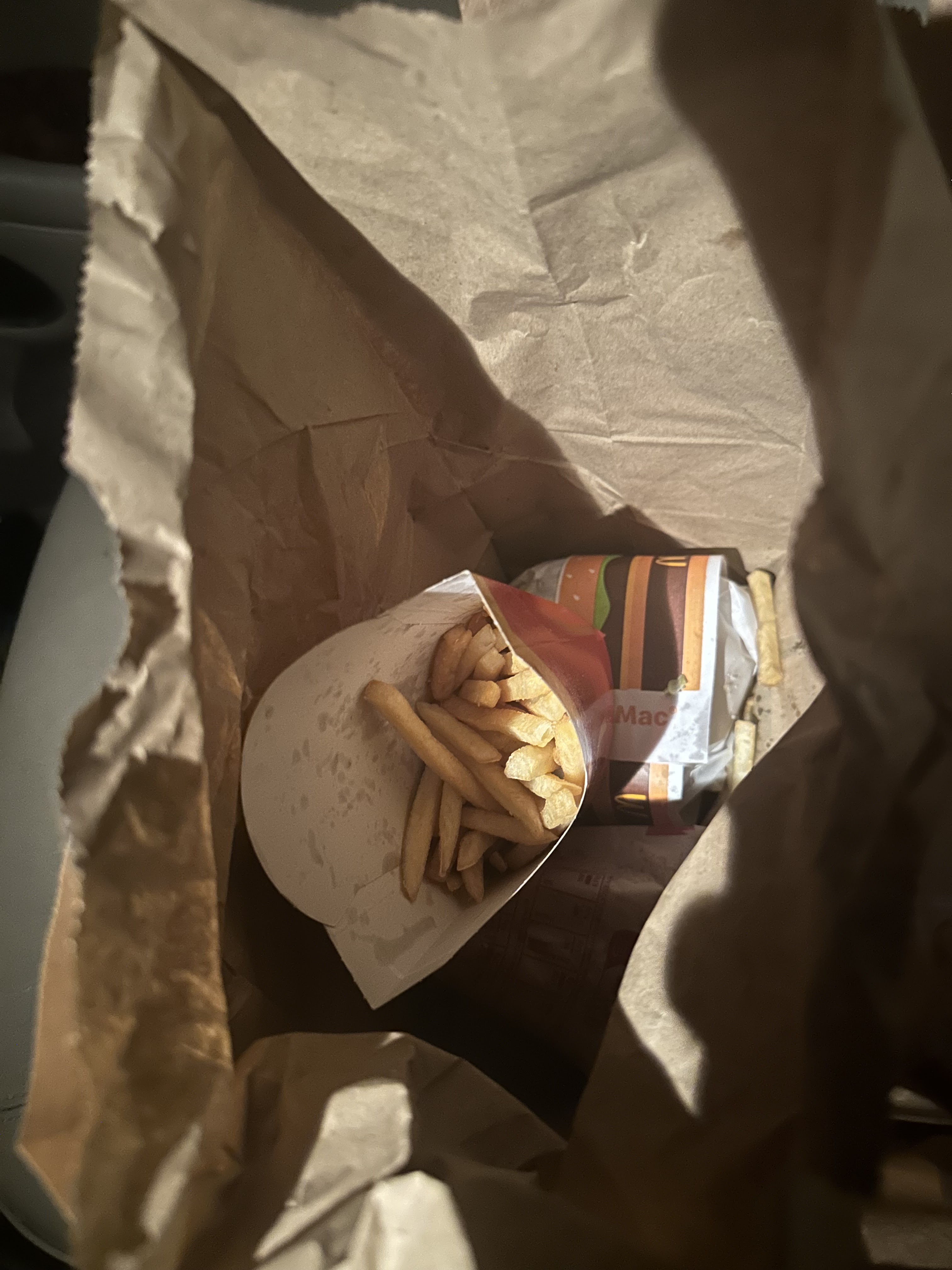 Étant une fan de macdo en débauchant je suis allée m’en chercher un. Comme jsuis un rat j’ai pris deux menu enfant, un avec croc macdo et frite et l’autre avec nuggest frites. Le croc n’était pas bon, il avait l’air d’être dans les chutes depuis bien plus d’une heure, le fromage était dur et le pain aussi. De plus, les frites étaient froides et pas salées.