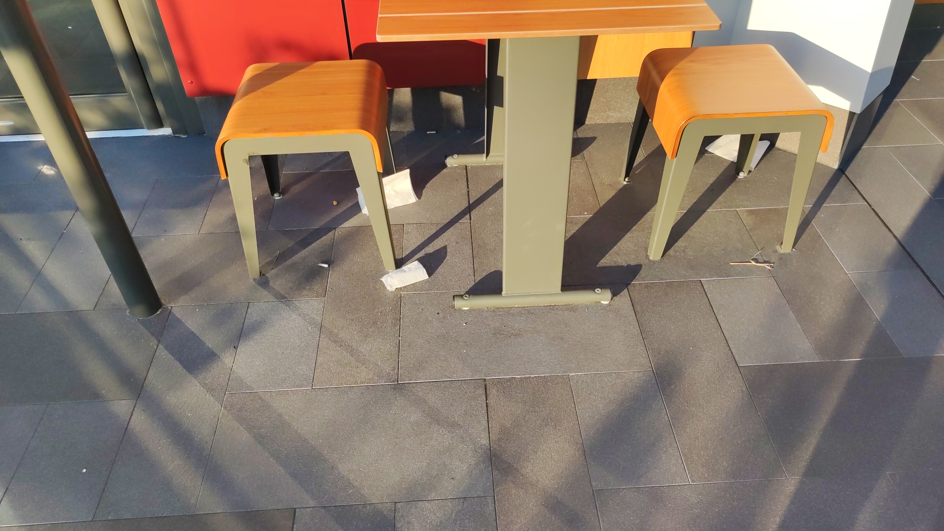Mc Donald très sale.. 🤢 Toutes les tables ne sont pas nettoyer on as du faire tout le tour pour en trouver une propre