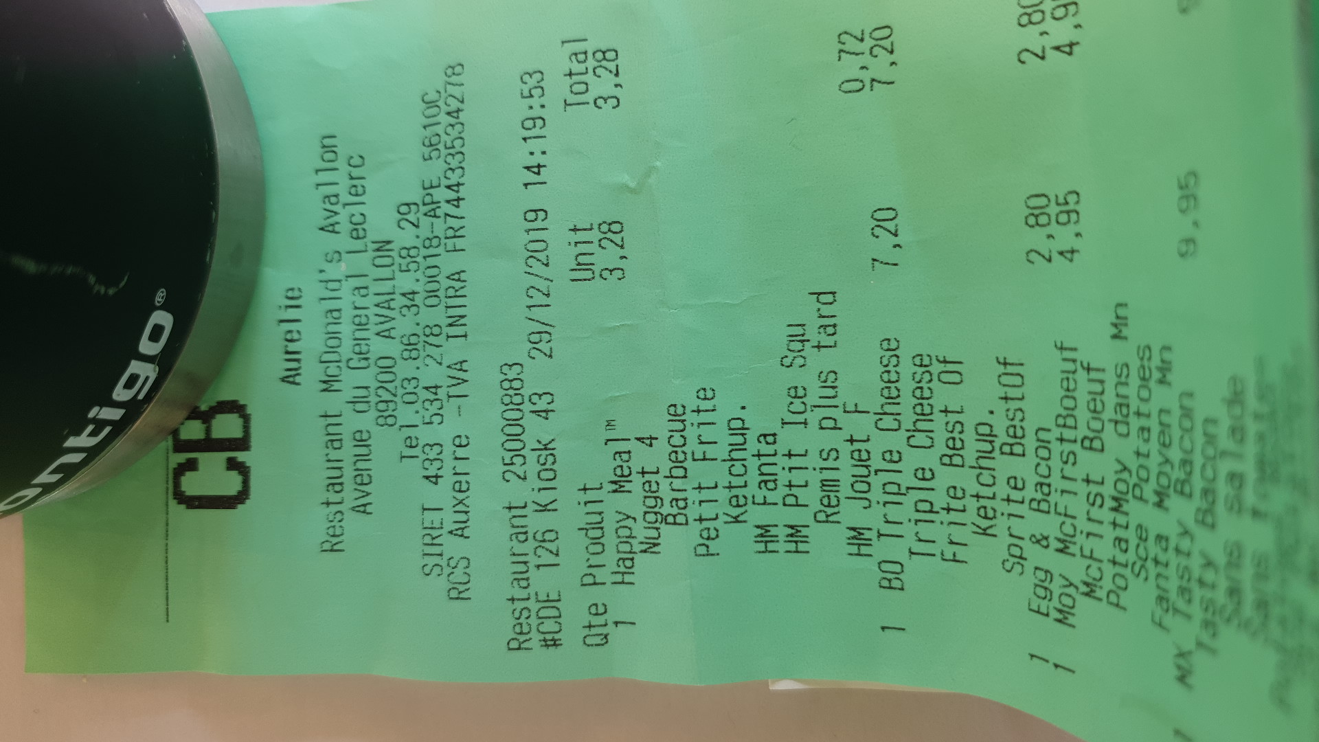 Néo Avallonnais, hier soir sortie cinéma, donc un petit Mac Do avant la séance de 20h. Commande à la borne à 19h,servi 30mn plus tard après 2 réclamations, Cheese pas cuit,(fromage même pas fondu),avec les nuggets pas les sauces demandés, frites salées à volonté. Réponse : On est en manque de personnels (équipé sympathique qui n y peut rien). Pour la prochaine sortie....