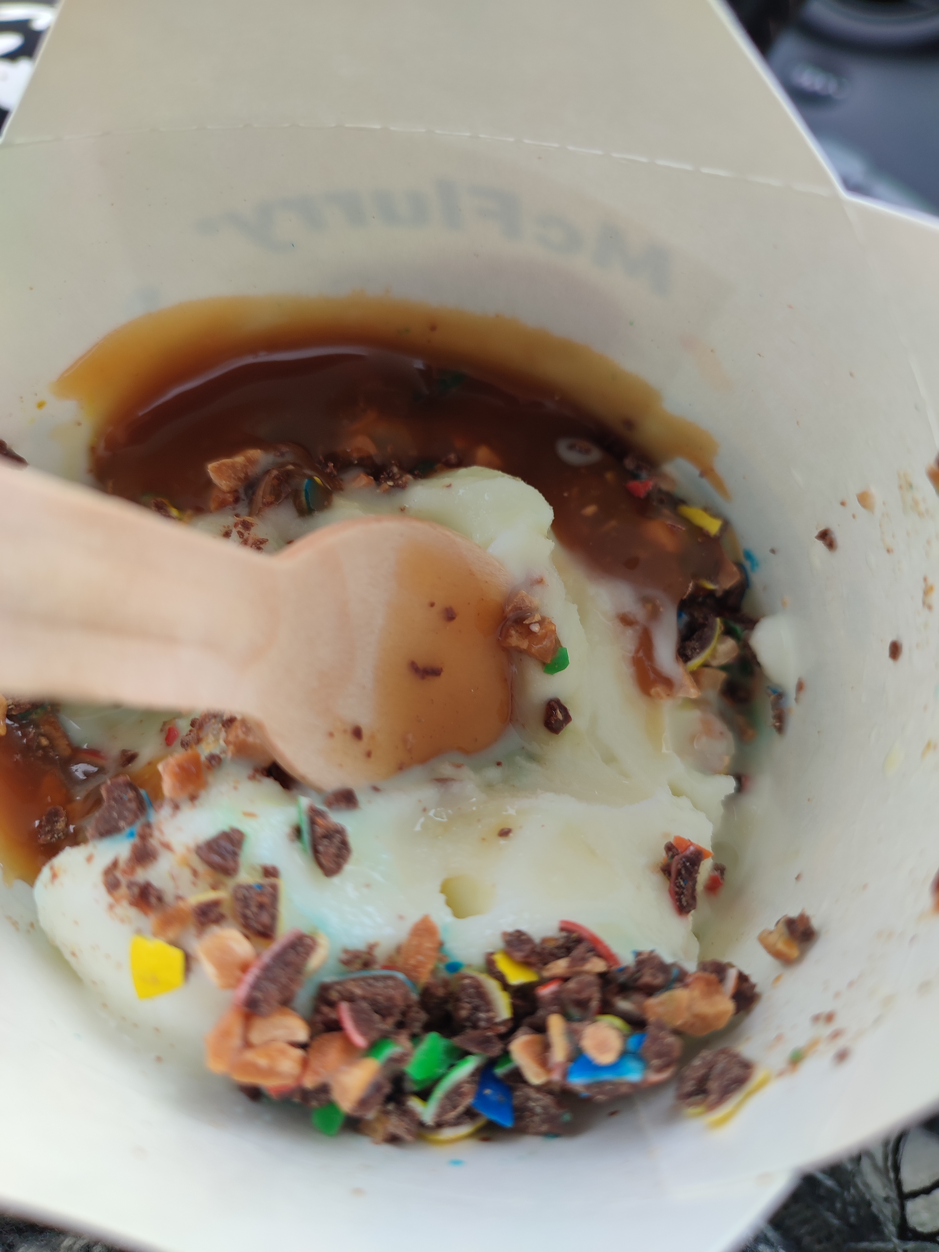 Extrêmement déçu, nous sommes arrivé à 19h40, servi vers 20h30.. car notre commande à été oublié. Mais en plus après ça, ils nous manquait certains produits et notre Mc Flurry était fondu... comme vous pouvez le constatez sur la photo. Autant d'attente pour ca cest inadmissible. Ce n'était plus une glace mais une soupe.. Je vous présente la Mc soupe (oui on garde quand même notre humour).