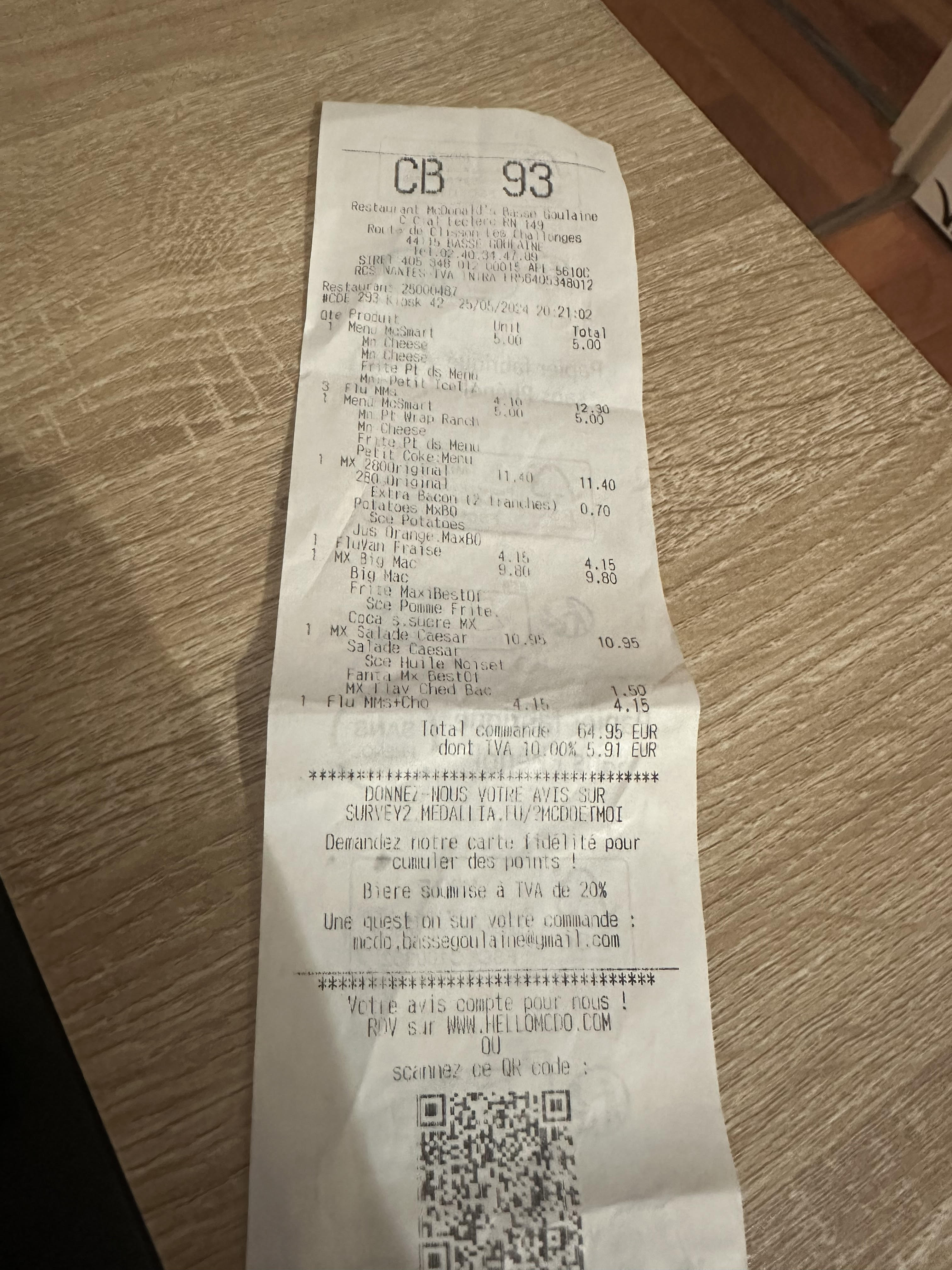 Commande très longue à venir 25mn pour un drive, je Commande un maximum bestof MC becon et je me retrouve avec un mcvrap ??? Je déconseille cette adresse. Je regrette vraiment de ne pas avoir vérifié la commande avant de payer.