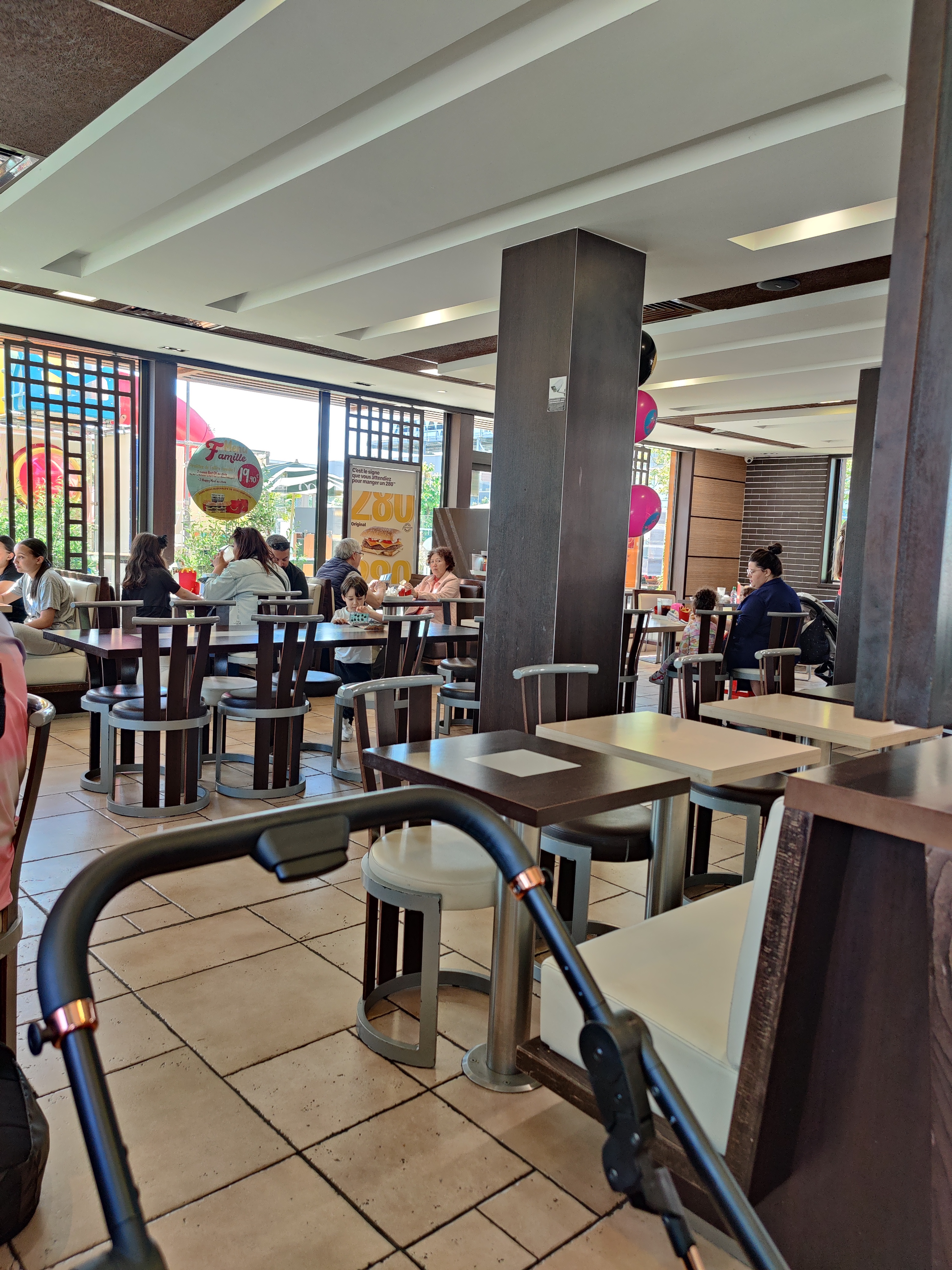 Sur place tables sales. Il faut demander à ce que les tables soient nettoyés… sol sale … hygiène à revoir. Prix excessifs pour ce que l’on mange. McDo est devenu un restaurant de luxe avec des conditions vraiment déplorables. C’est un fast-food pas le fouquet’s.