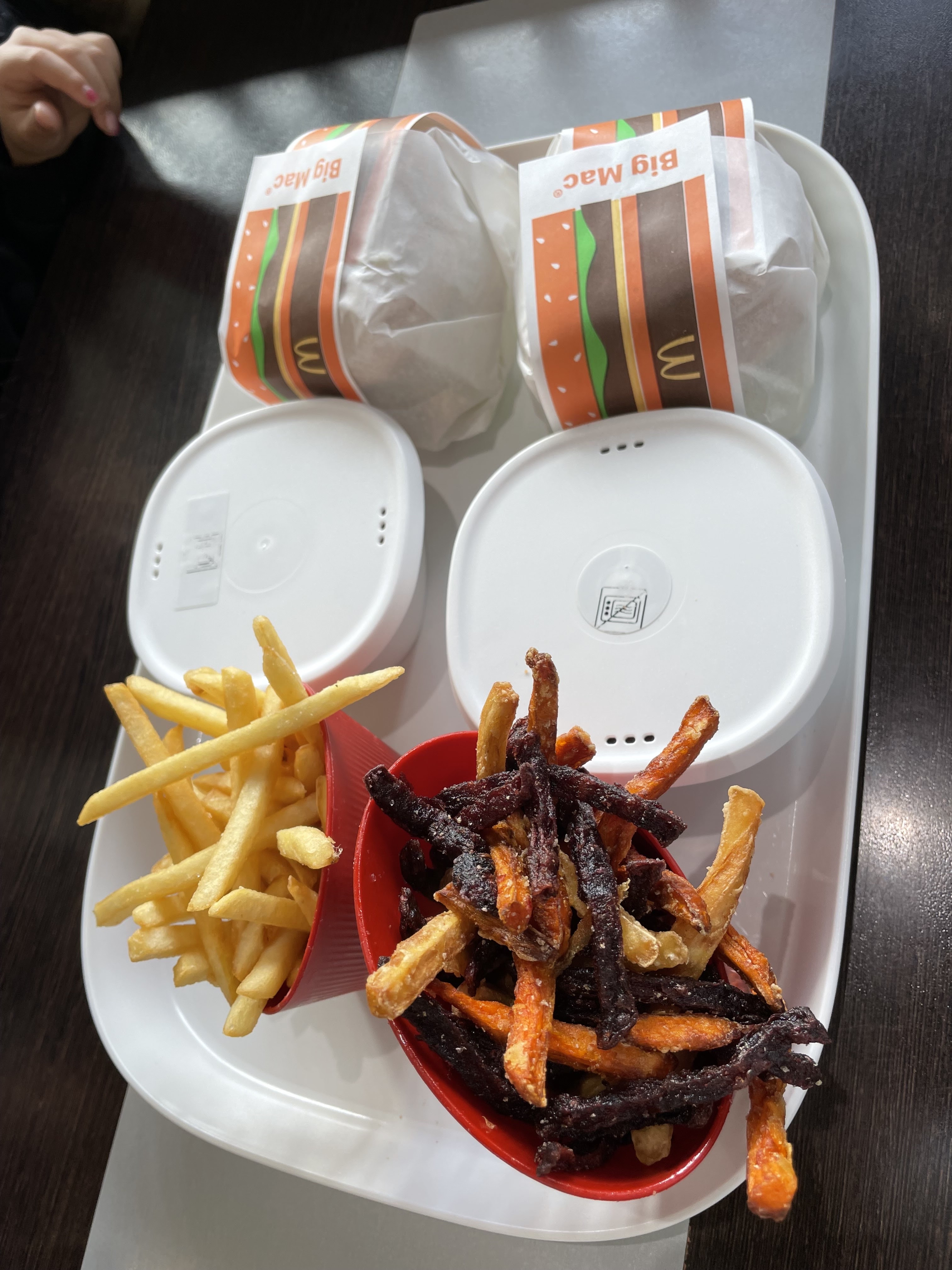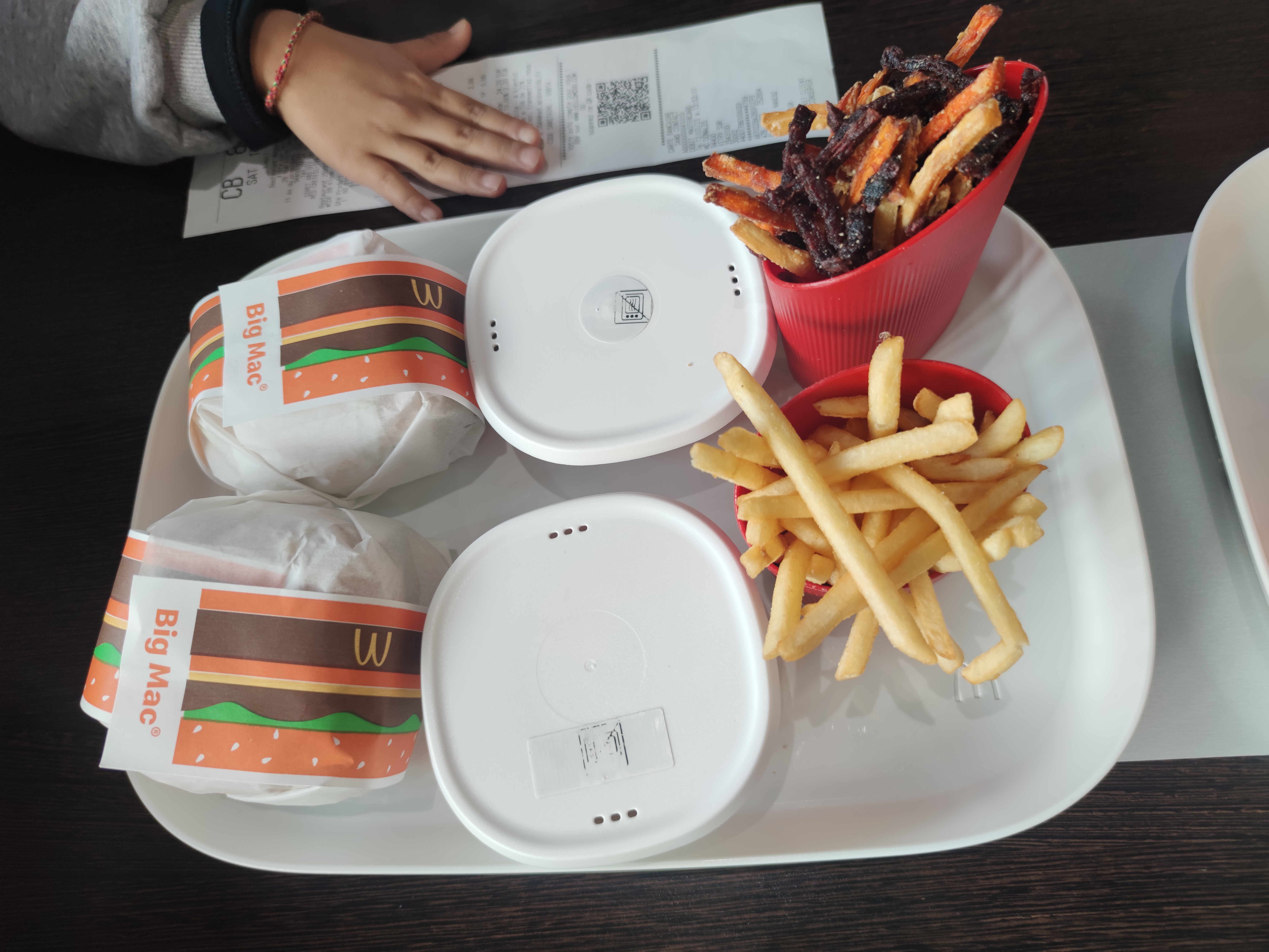 Deux menus : un menu maxi complet noquel et un happy meal sans nuggets ni patatoes. Super service… surtout à 21h en semaine sans aucun rush.
