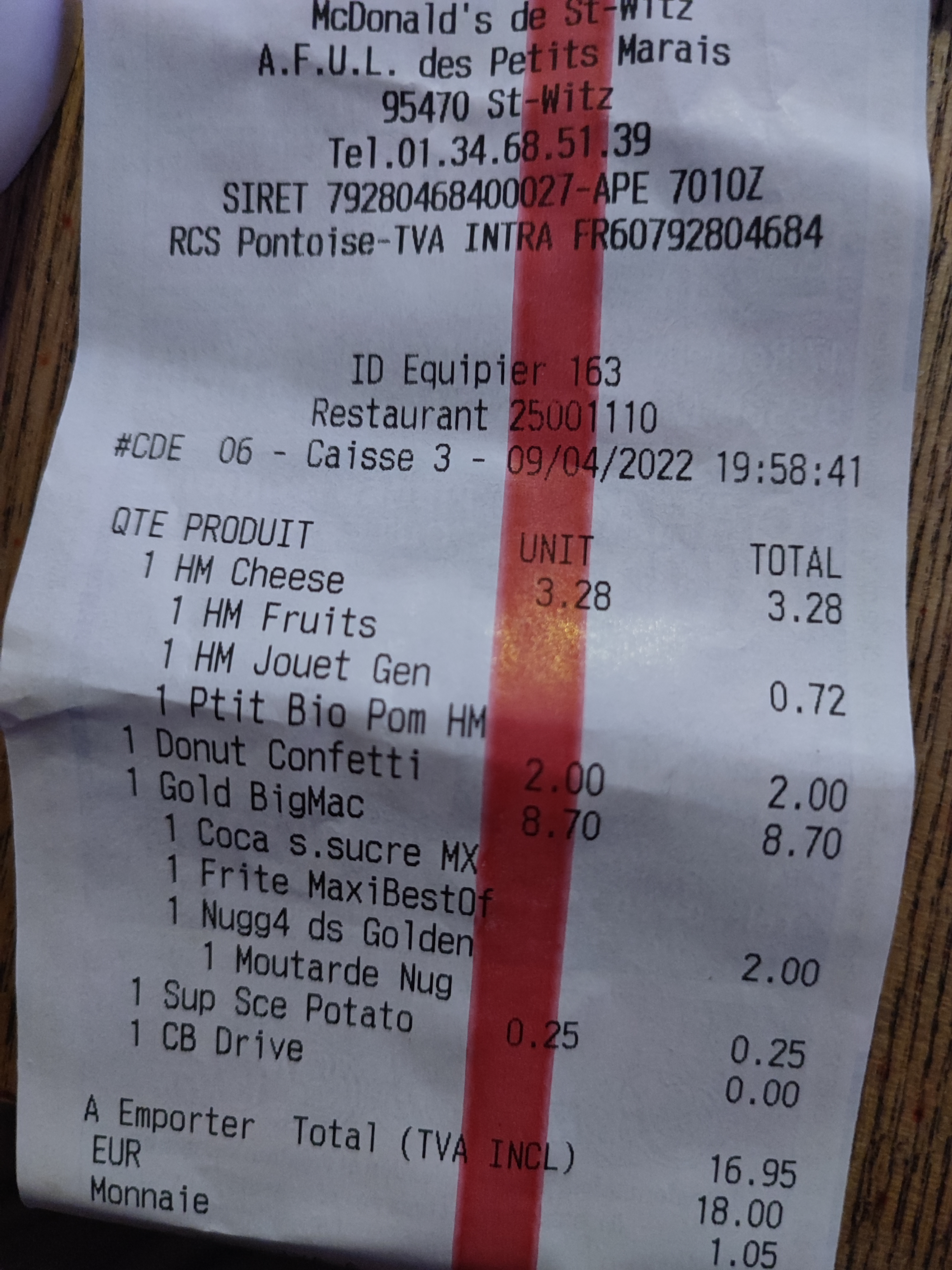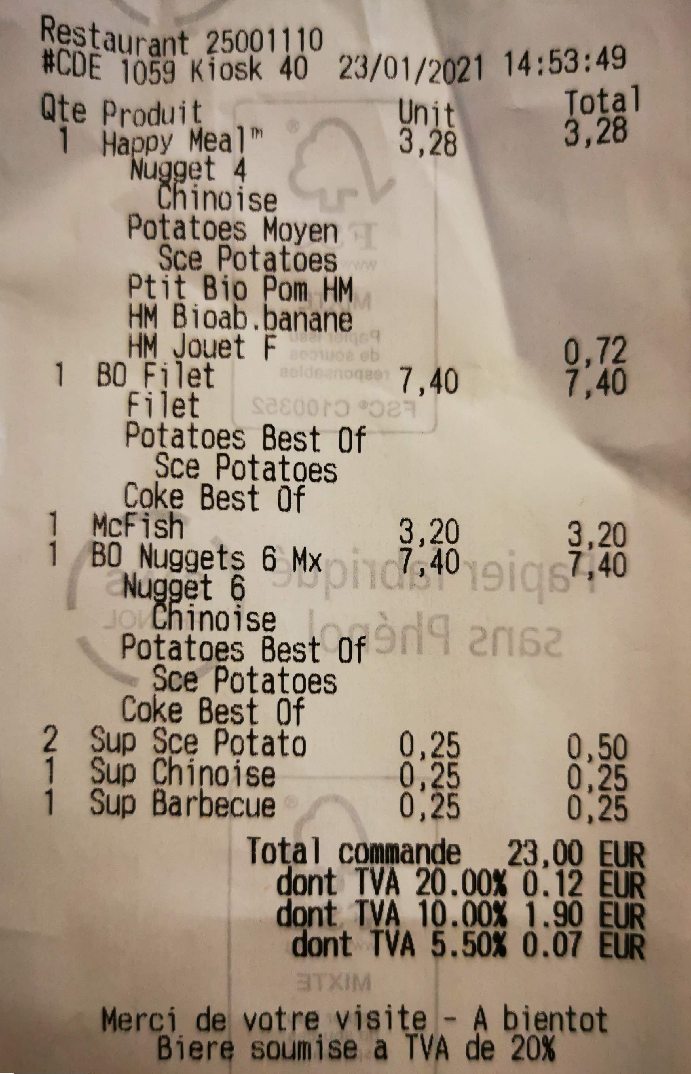 C’est une habitude dans ce macdo, il y a toujours quelque chose qui ne va pas à chaque passage… ce soir au drive déjà une attente alors qu’il n’y avait que 2 voitures, j’ai récupéré une commande où il manquait le jouet dans un happy meal, dans l’autre happy meal j’ai eu le droit à un livre rempli de coca cola sèché tout collant, pour le wrap chèvre la tortilla était sèche et dure sur tout le tour, trop longtemps laissé à l’air libre je suppose , franchement une calamité ce macdo… mieux vaux aller à l’intérieur et tout vérifier au comptoir en direct