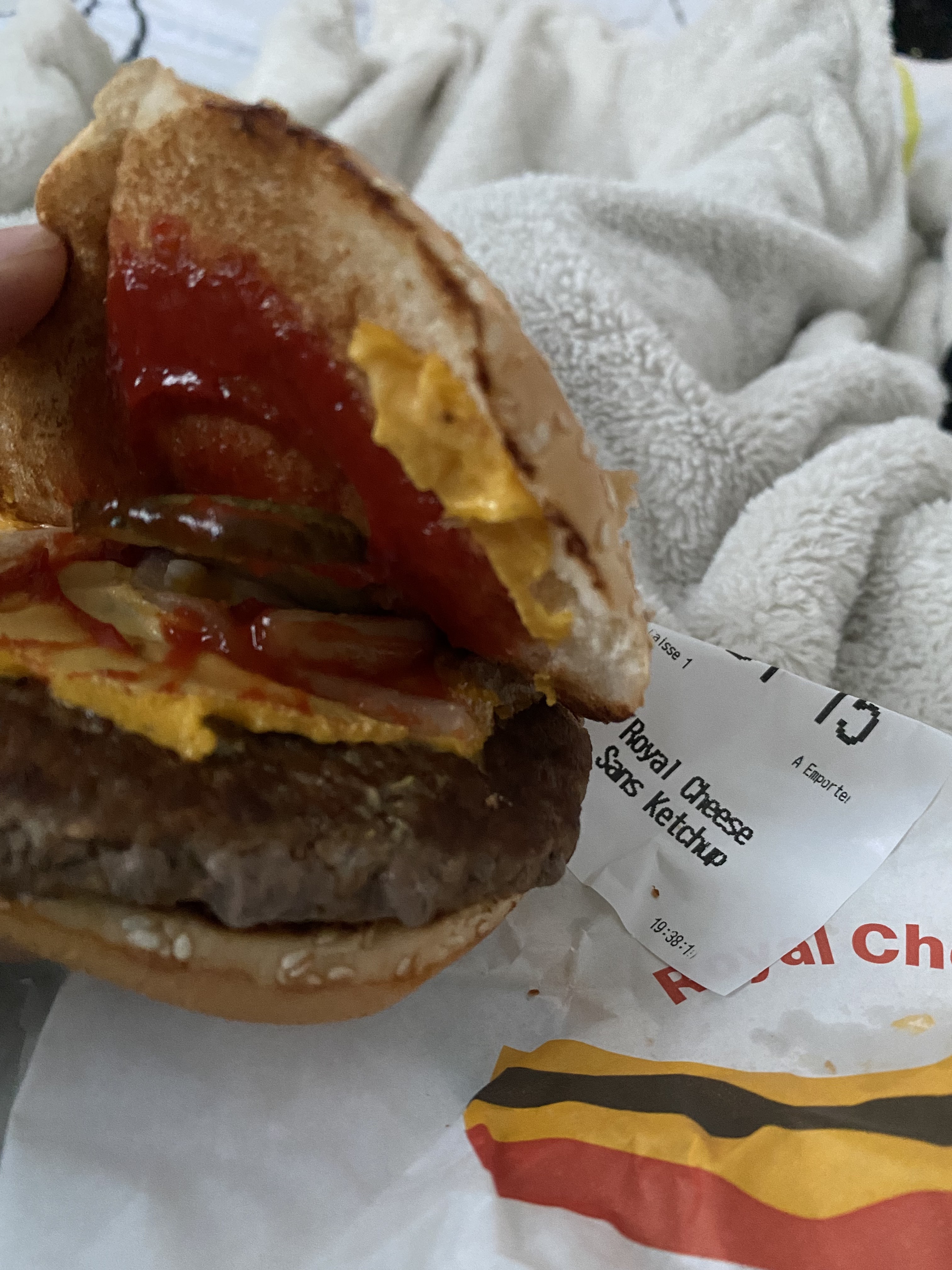 De pire en pire, j’ai commandé un double royal bacon… Pas de fromage, très très sec..