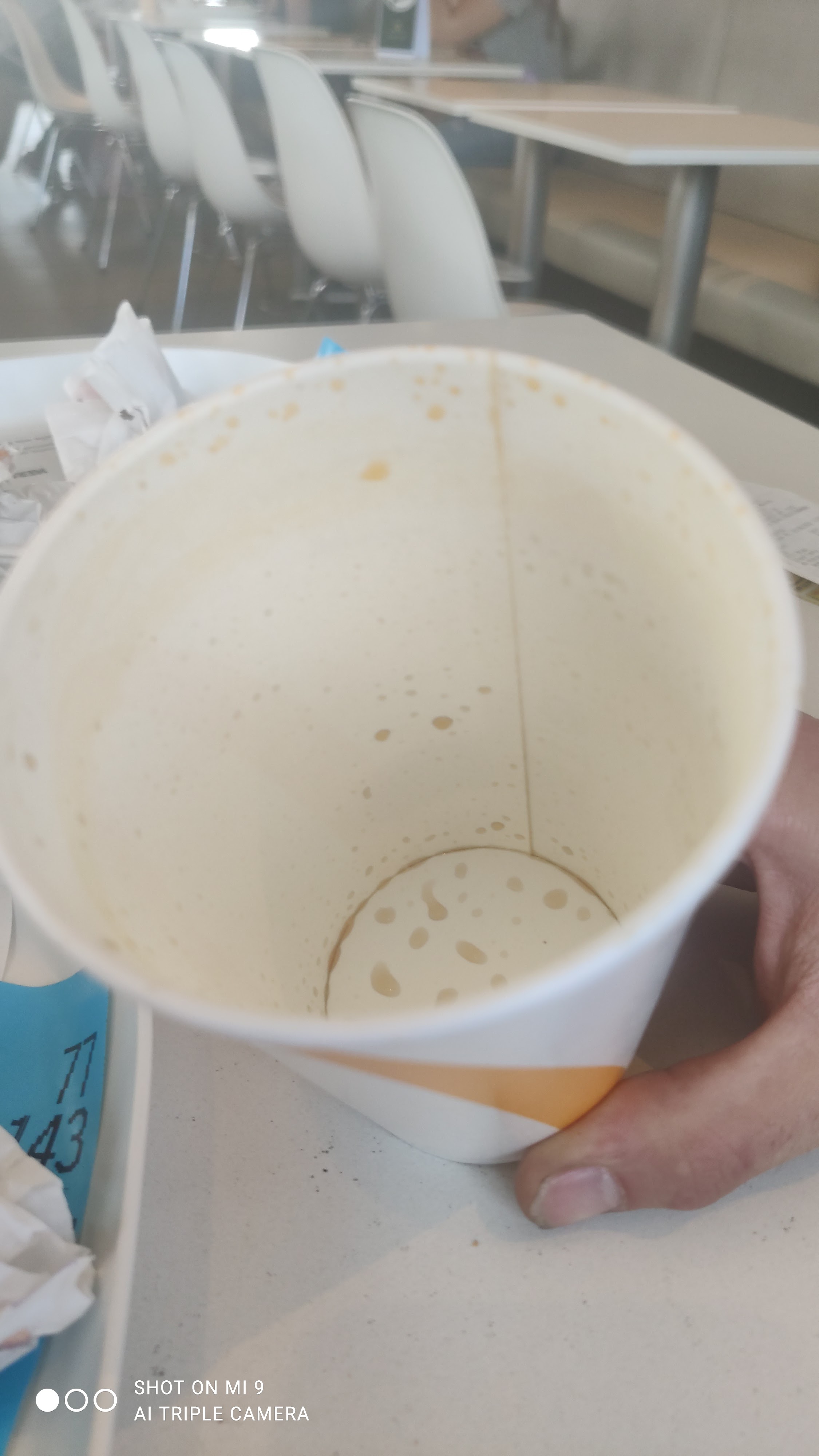 Je soupçonne le mcdo de réutiliser les gobelets étant donné que mon ami à pris un coca. Alors pourquoi il y a du Fanta sur son gobelet surtout que nos gobelets sont arrivés déjà taché 🤦♂️et c'est les anciens en plus c'est plus les nouveaux on vois que les gobelets sont rincé à force d'être utilisé.