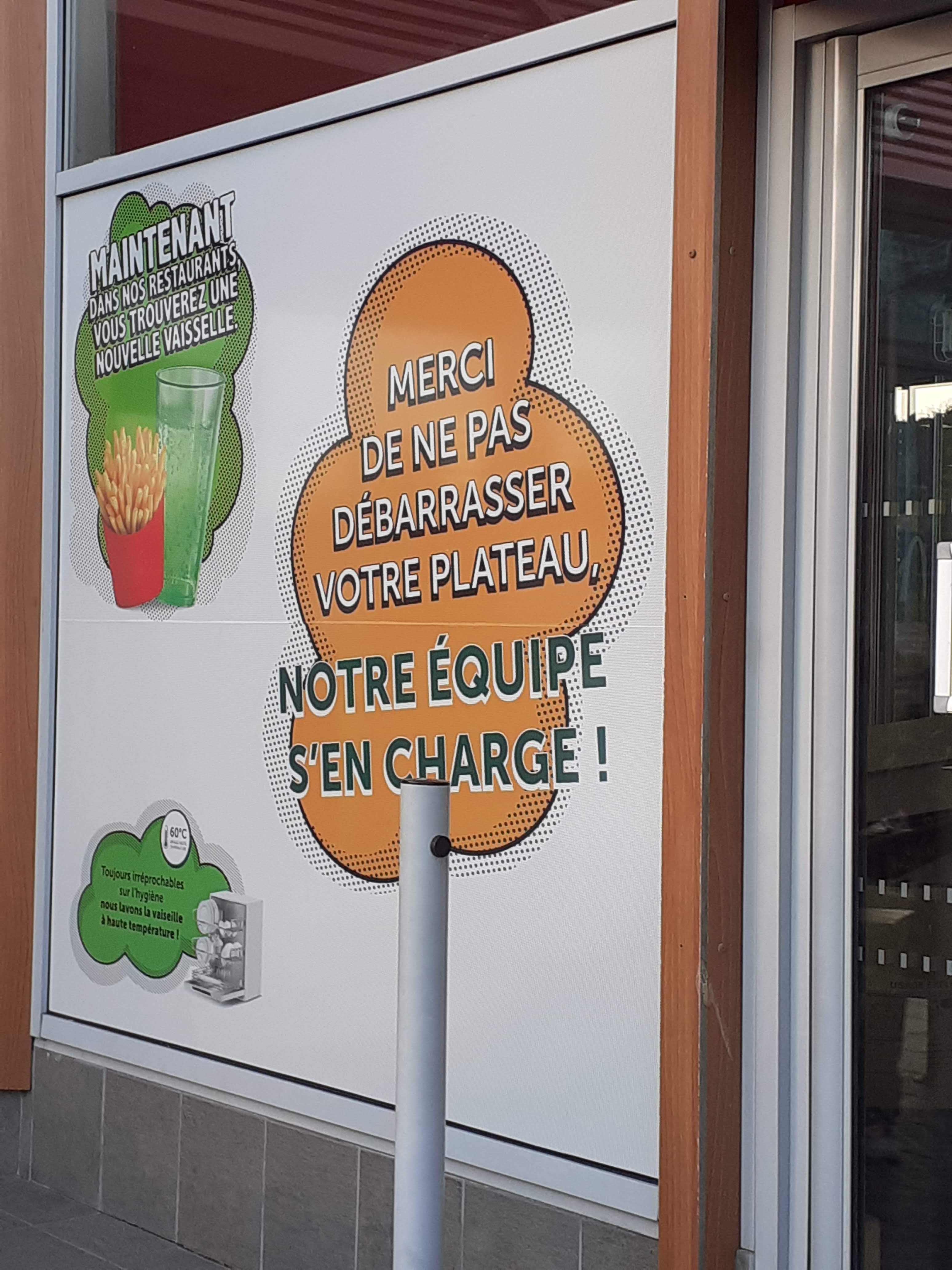 Venir avec ses enfants pour un moment agréable au McDo et se retrouver à devoir garder son manteau à table , tellement il fait froid dans la salle. Pas de vaisselle réutilisable dans le Happy meal. Étonnant … Nous ne renouvellerons pas l’expérience