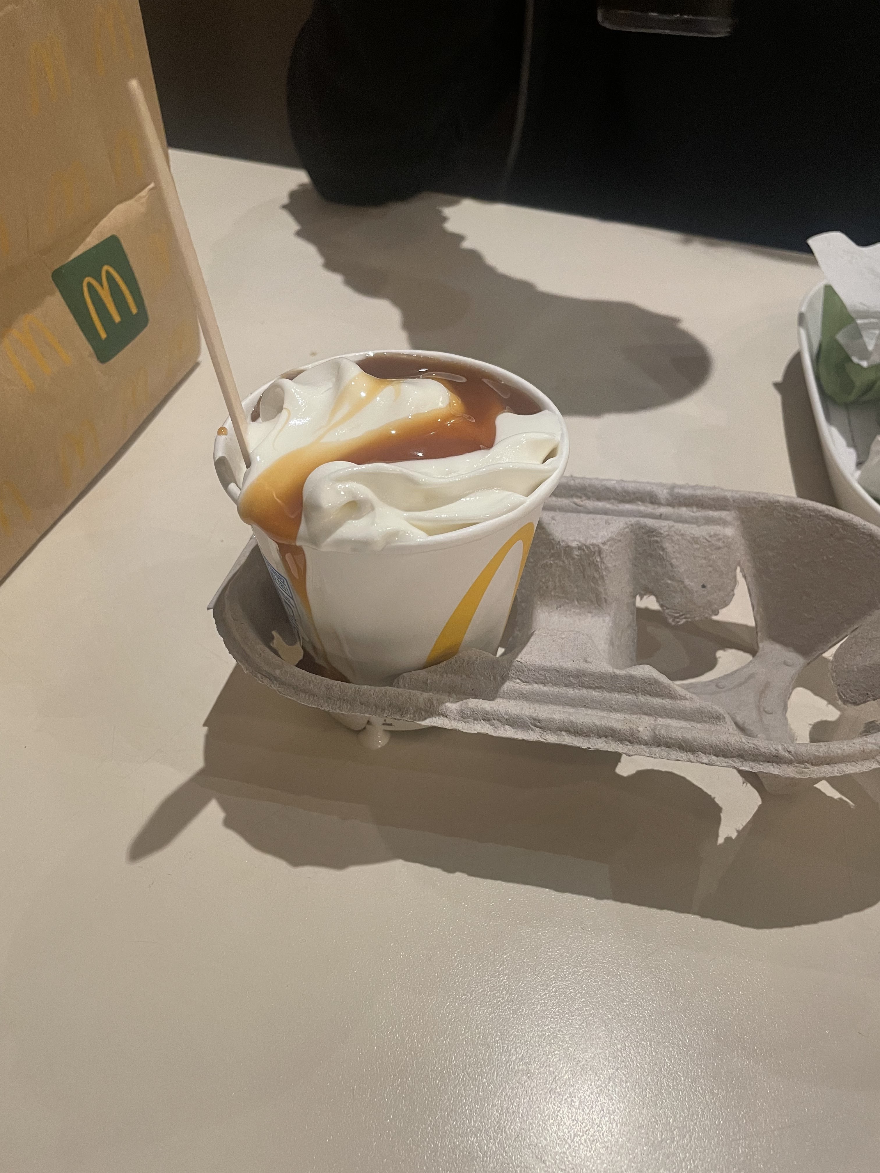McFlurry et Sundae la texture à changée le goût crémeux perdu reste un goût neutre il semble plus riche en eau et sucre 👍👍 bonne dégustation quand même