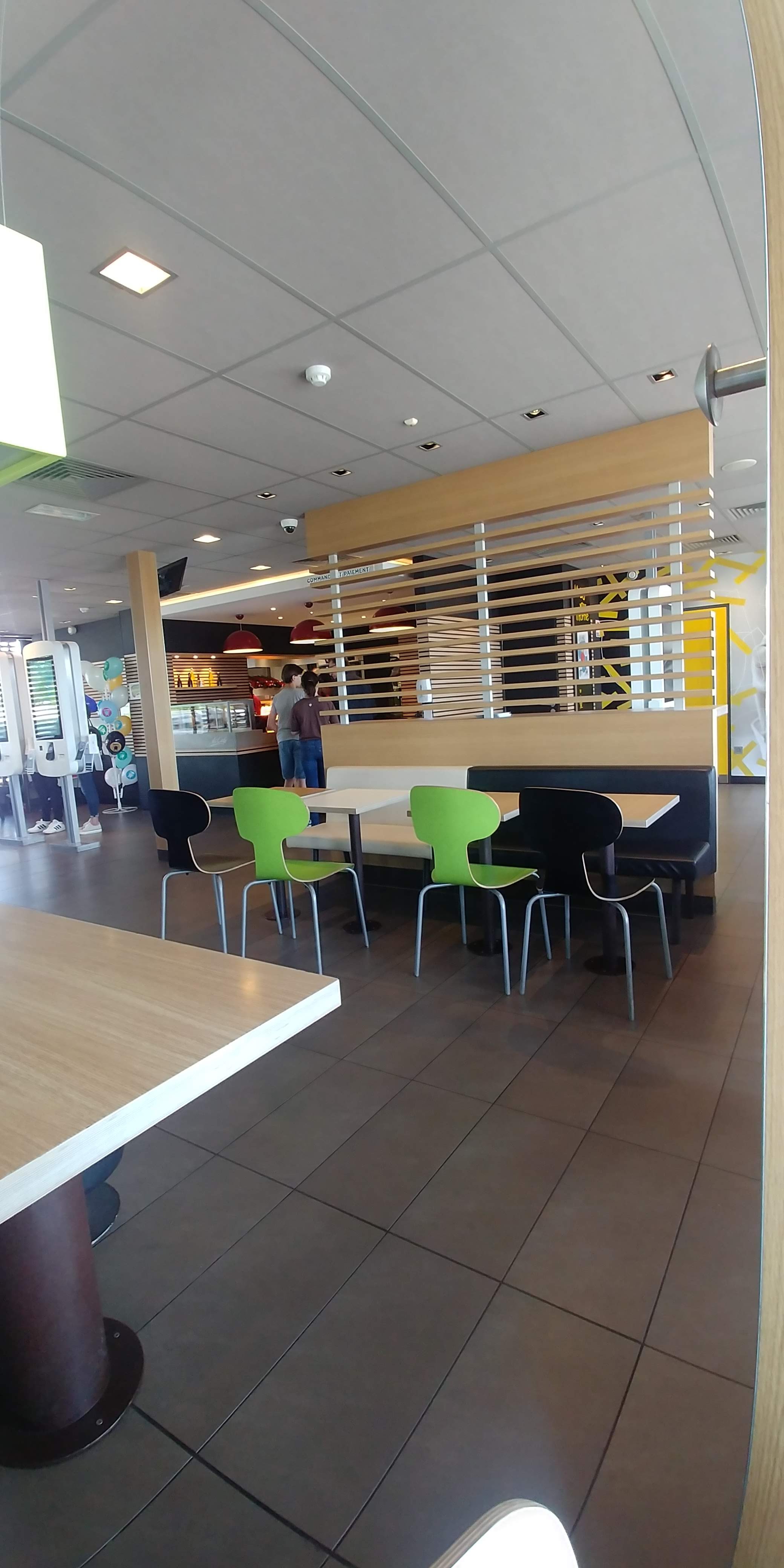 Comme tous les autres mc Do aujourd'hui. Plus aucun contact avec les clients, on passe à la borne et on nous livre en zieutant notre numéro de ticket. Un environnement propre sans plus... À ceci près qu'il faut maintenant forcer les formules élémentaires de politesse à savoir Bonjour, merci, bonne journée bref la sociabilité version 2.0 j'ai encore du mal à m'y faire...