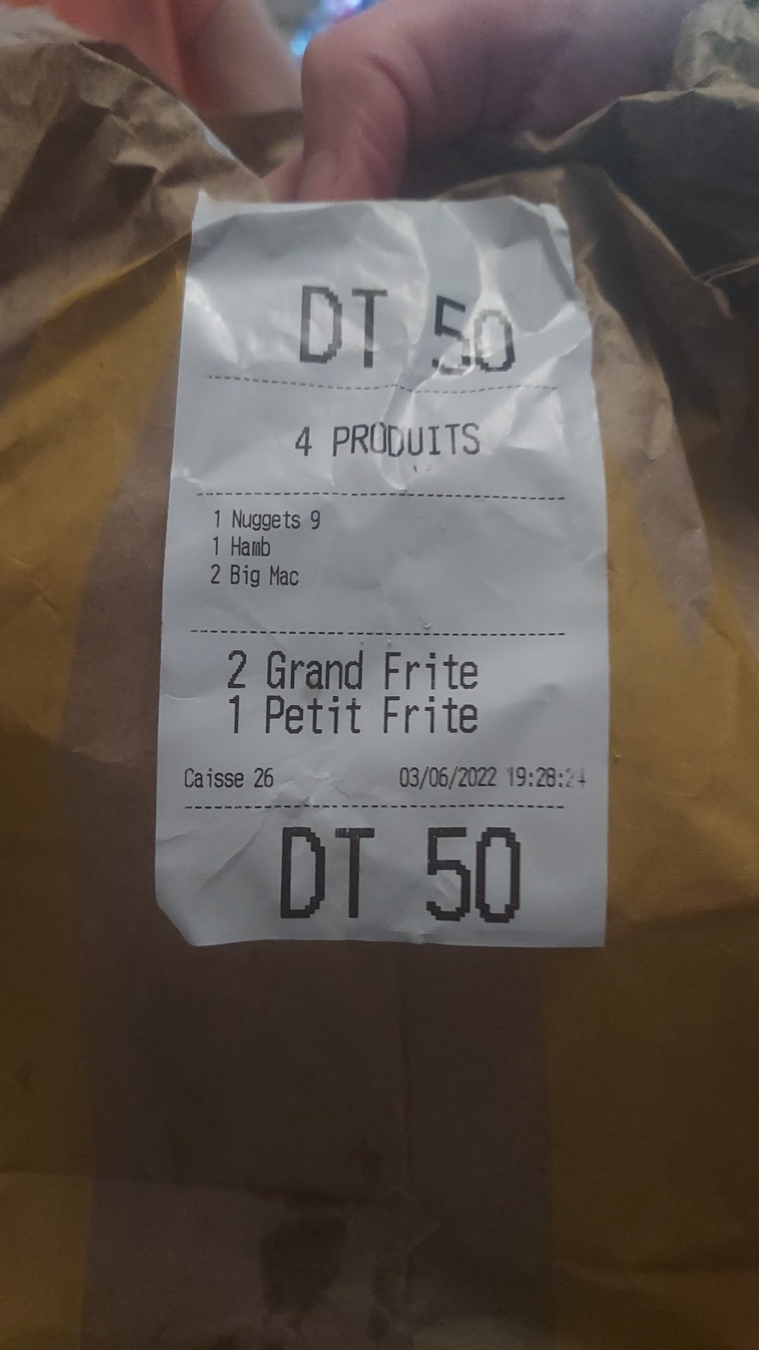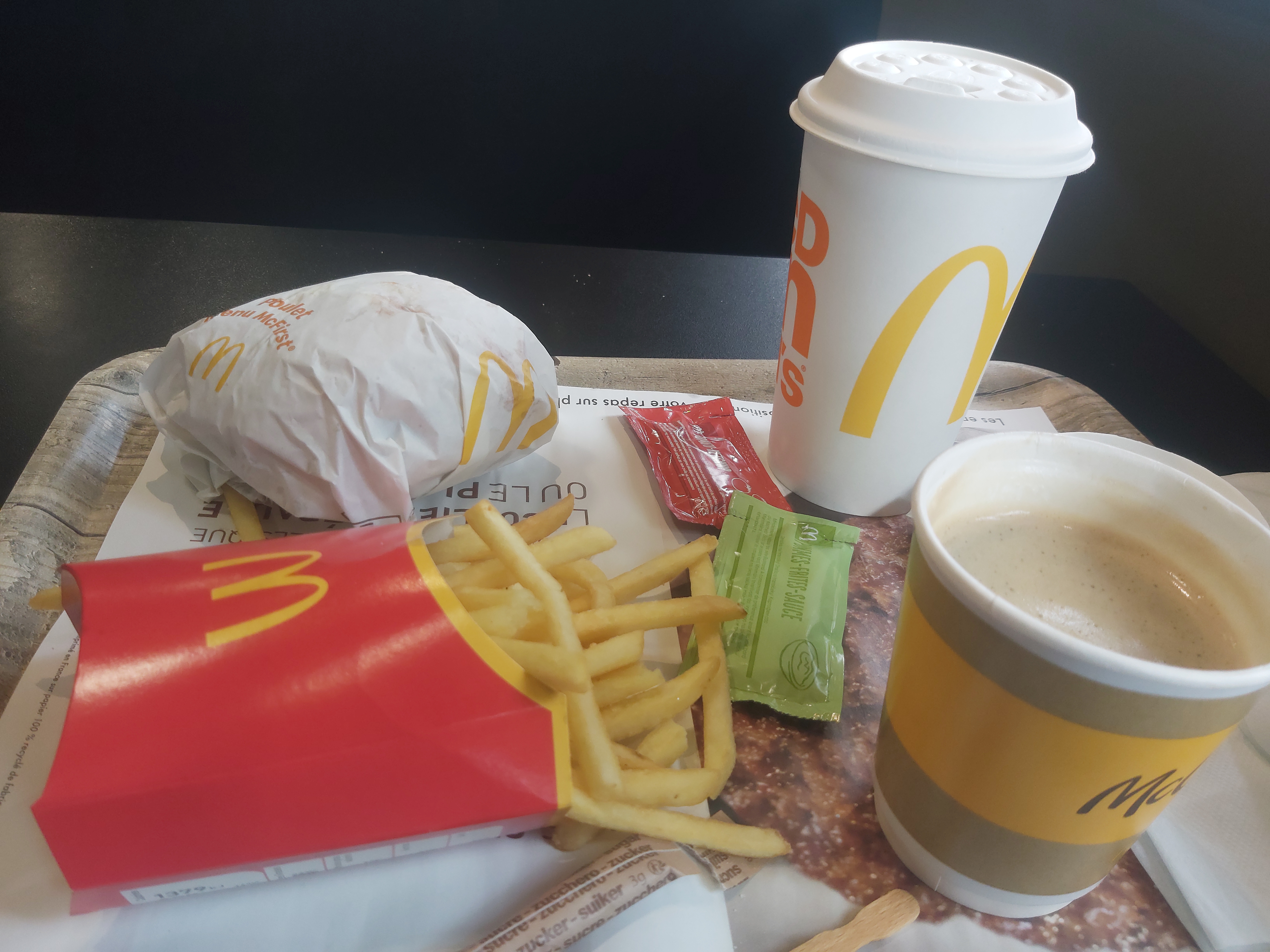 Commande reçu rapide. Mais pas avoir était compris au début. J’ai demandé un menu Mac first au poulet sans ketchup et tomate. Je l’ai eu sans ketchup et tomate, très bien mais au bœuf alors que j’ai bien précisé au poulet. Depuis quand on met pas d’accompagnement de sauce avec les patotoes. En sachant que j’ai pris des nuggets avec sauce delux et chinoise. C’est bien dallez vite mais faut penser au client…