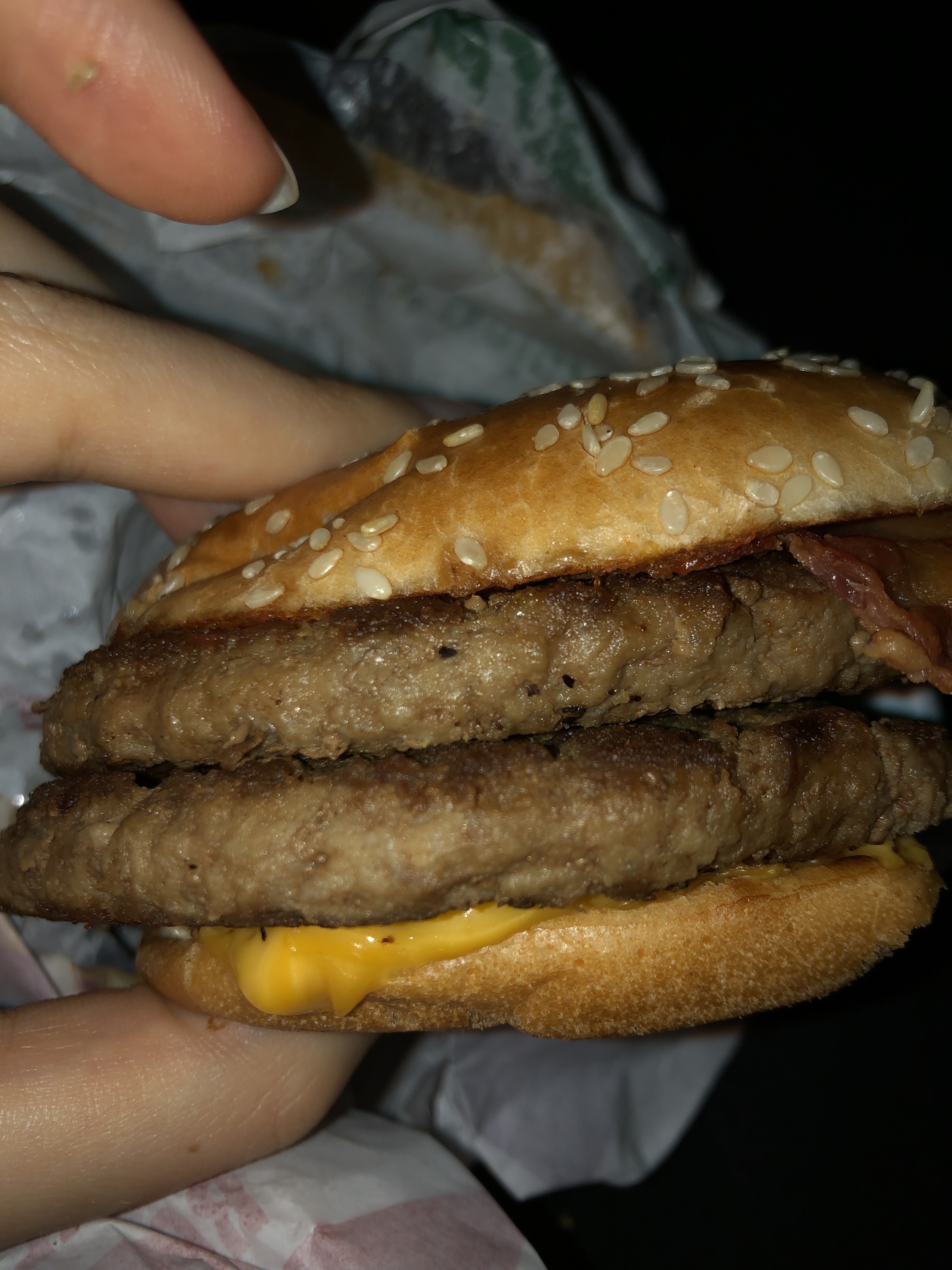 Burger froid et fromage même pas Fondue frites et potatoes pas cuites coca avec un goût vraiment pas bon venu en famille on était vraiment très déçu vraiment à fuir avoir dépensé de l'argent pour remplir la poubelle du mc do😤😤😡😡😡