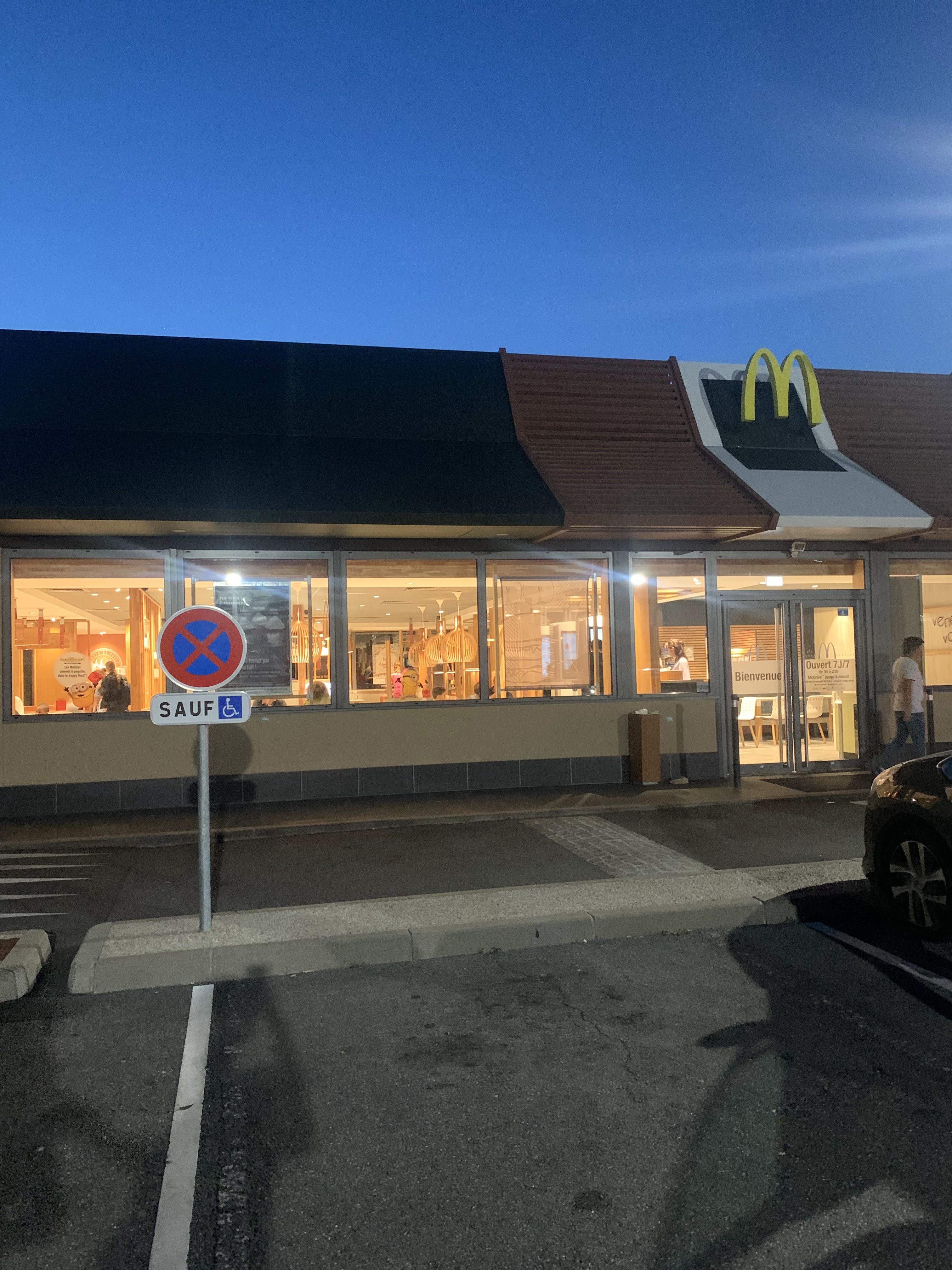 Première fois que je vois un McDonald’s aussi propre, service rapide, équipe souriante et chaleureuse. Je le conseille fortement surtout en cette période d’été avec leur large choix de glaces !! Et les enfants ont été très contents avec l’aire de jeux et des ballons offerts !