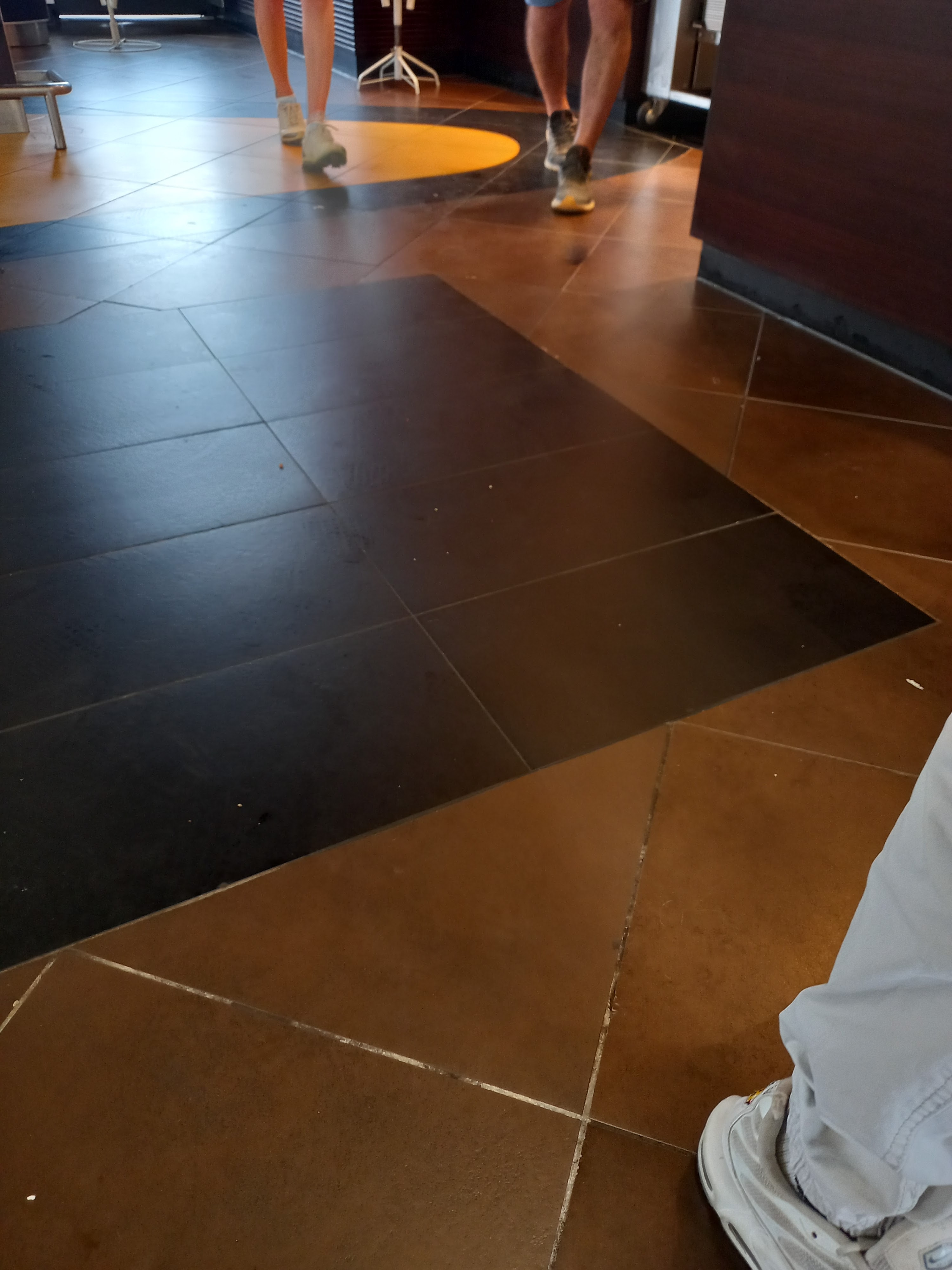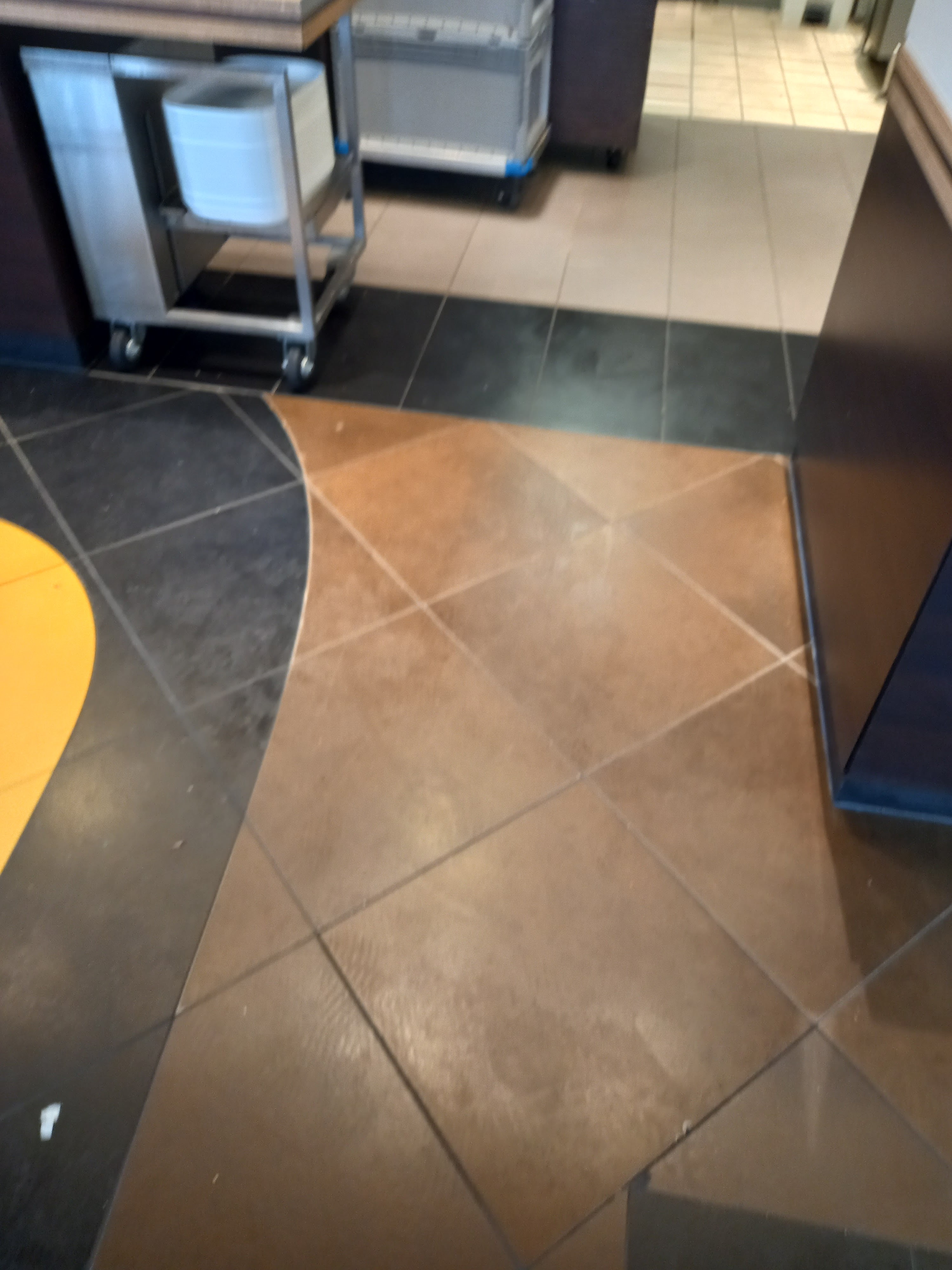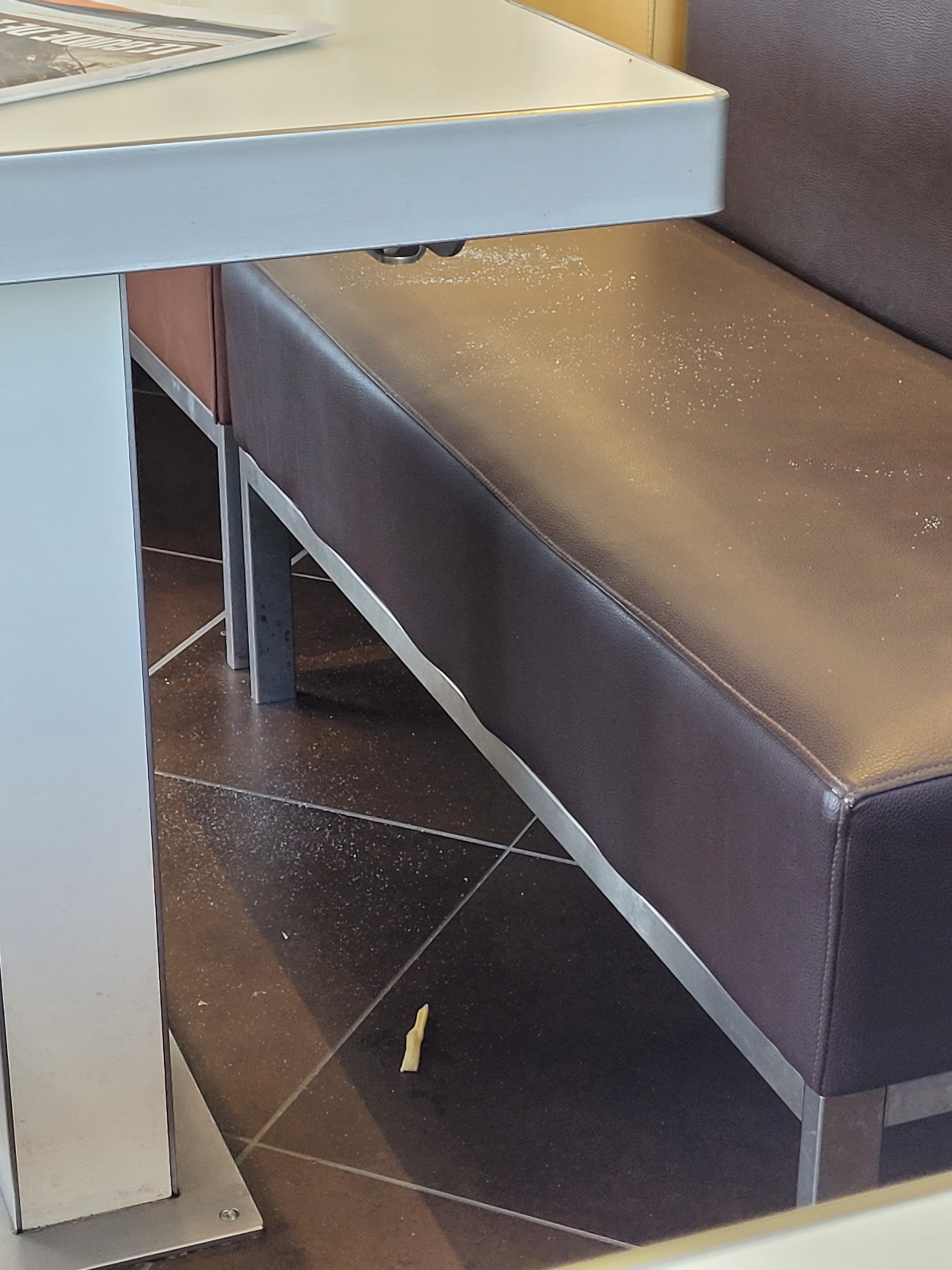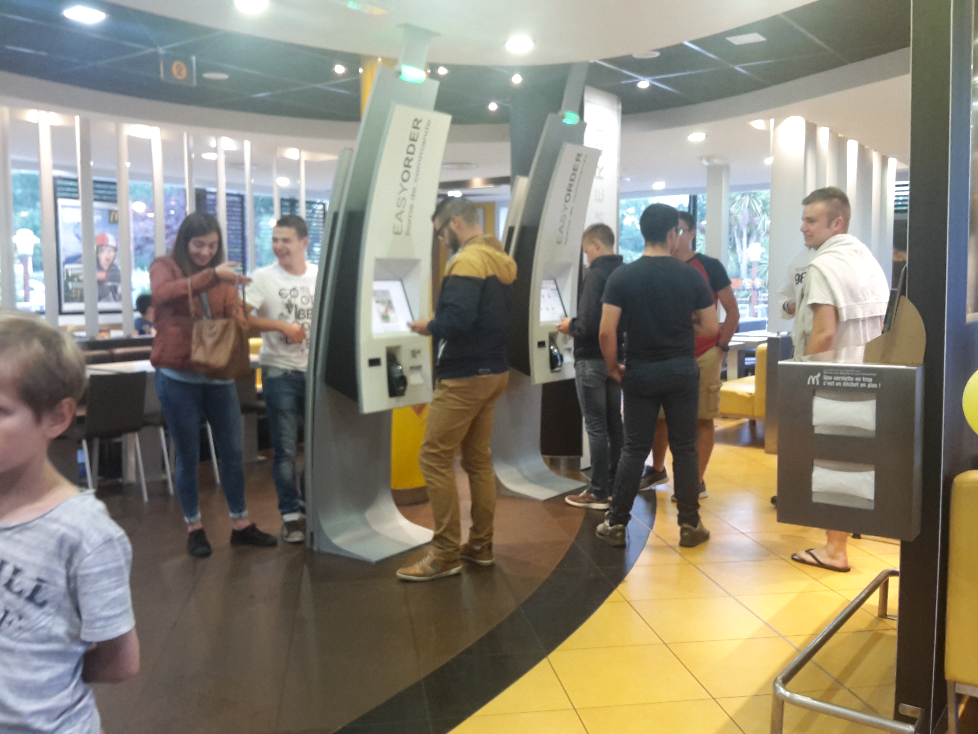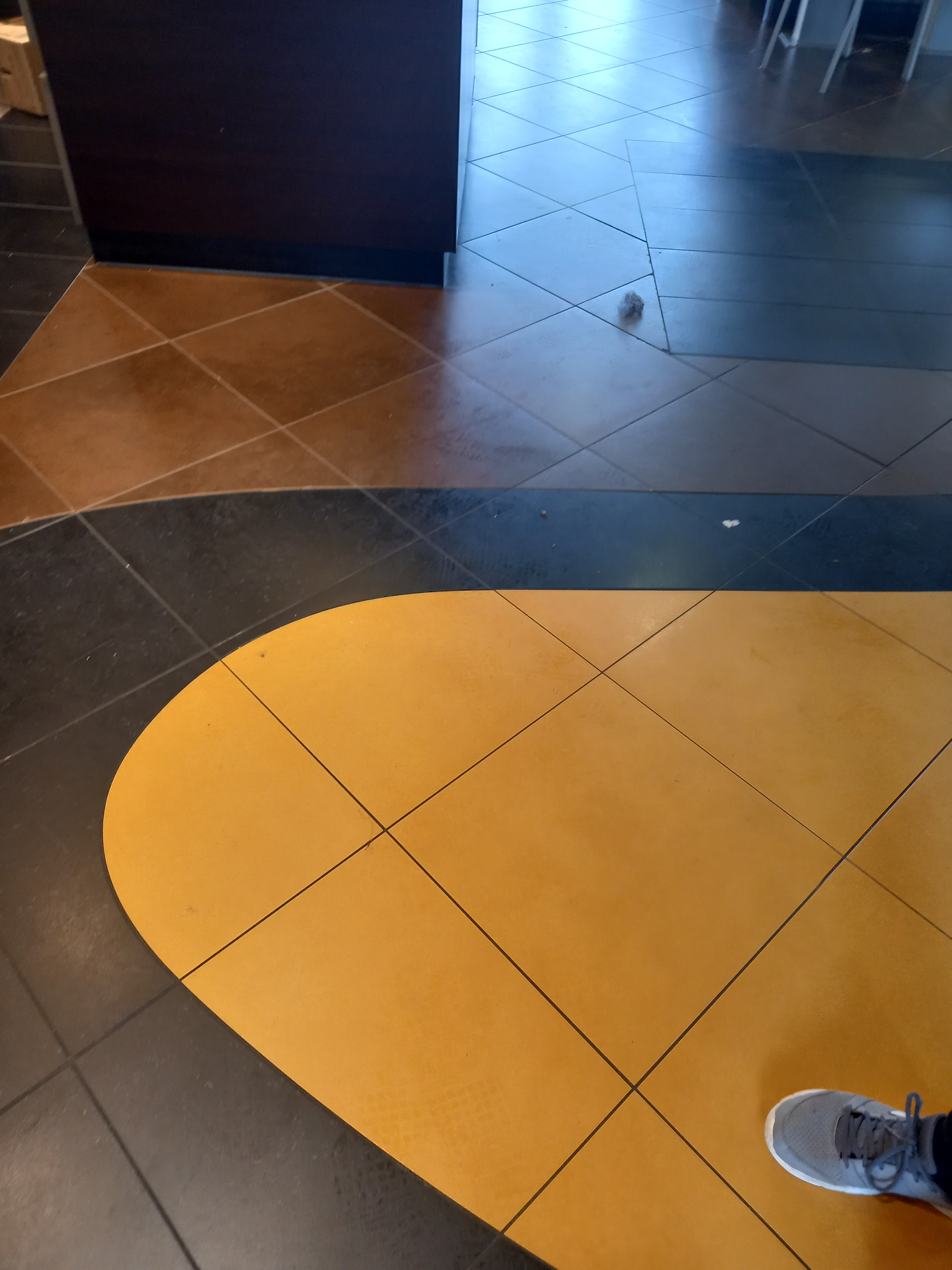 Assez surpris par l'état du sol des tables, banquette, sûrement qu'il ya qu'un seul service de ménage à la semaine, sol collant et gras, la table idem, 2 borne seulement en marche et surpris de voir le personnel rouler leur cigarette devant les client derrière le comptoir c'est un concept !! Après niveau nourriture sa reste un macdo quoi