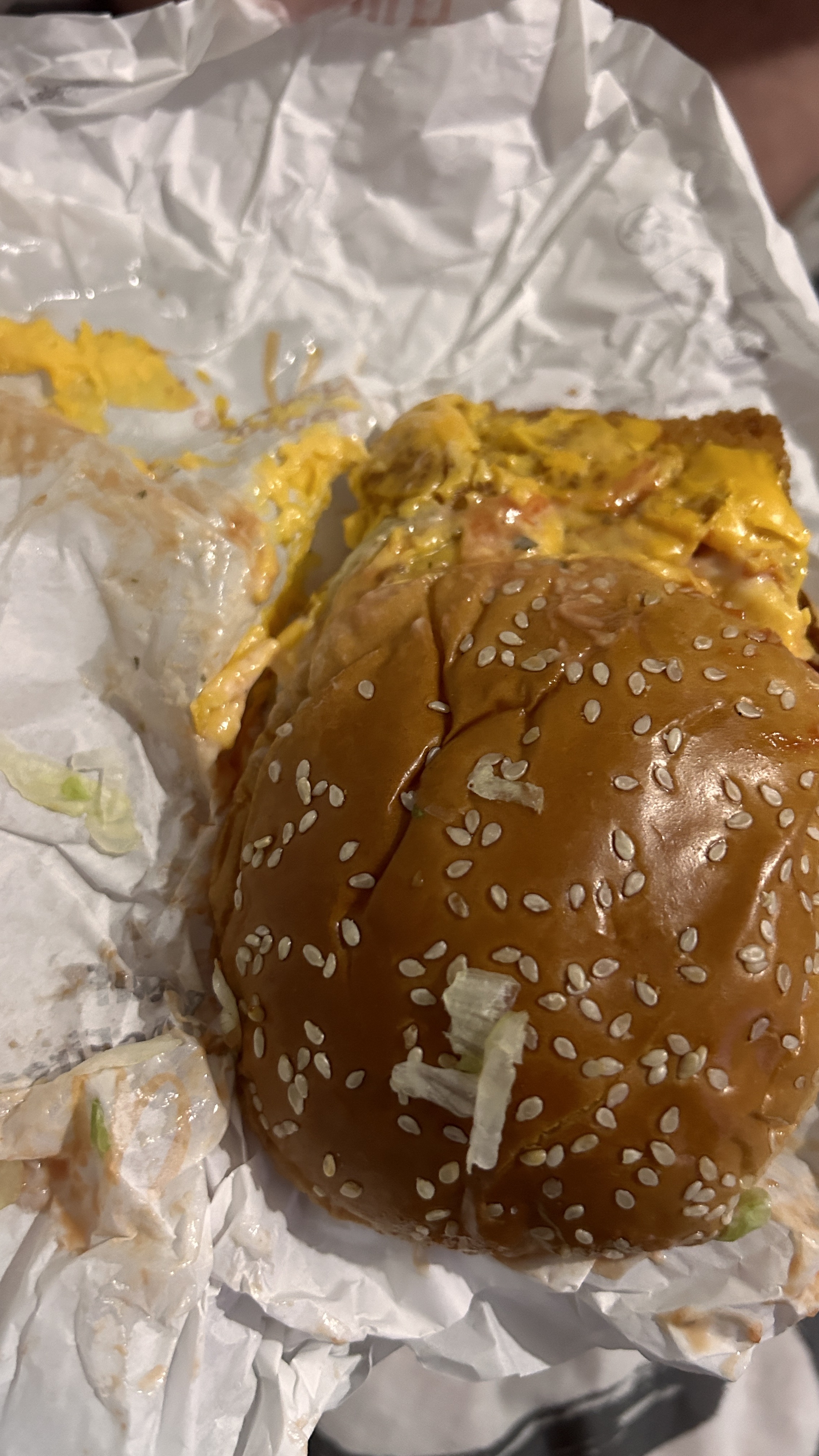 Il manque tout le temps les sauces on doit vérifier a l'intérieur des sacs on demande du poisson et on a du poulet ,je les appelles et on me dit j'ai qua changé de restaurant, je trouve sa lamentable de repondre comme sa a ses client ,McDonald's le fonctionnement est vraiment nul et revoir sur toute la ligne .voilà un des sandwiches que je reçois quand je fais un drive voilà le résultat arrivé à la maison inaccessible t’a même pas envie de manger honteux 😡