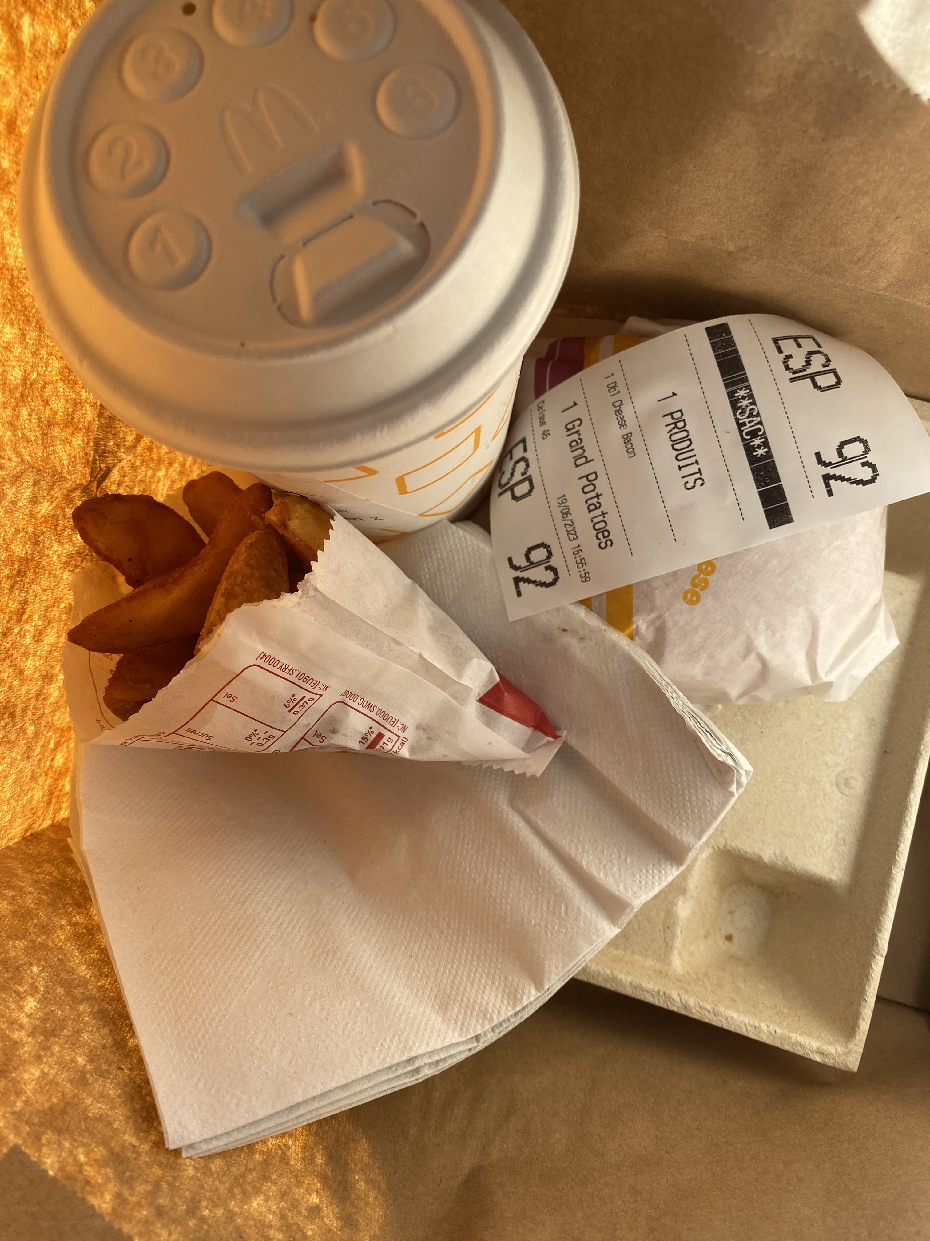 Rien qui va. Je ne compte plus les oublis dans la commande. Dernière fois que je vais à ce macdo.