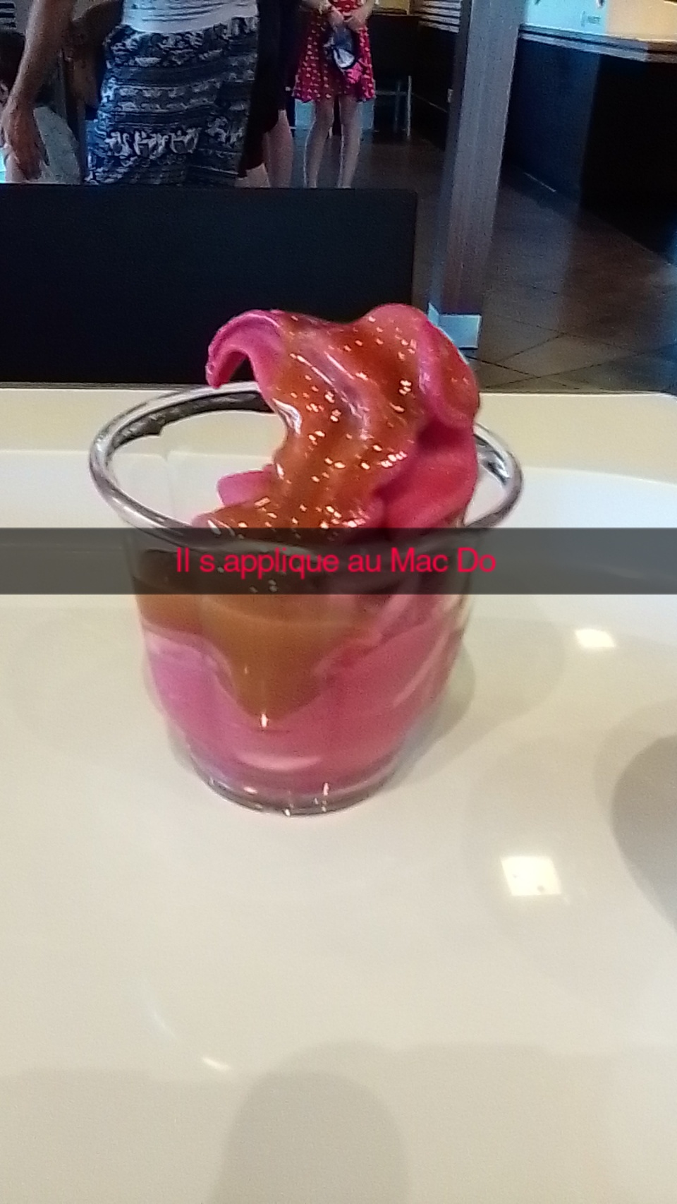 Petite sortie en famille couronné de succès comme très souvent les enfants sont ravis (oui oui . Mcdo ) petit bémol on a attendu nos glace un peux trop et perso je kif pas tout les truc en plastique je conprend bien la démarche mais le carton se recyclé aussi ź