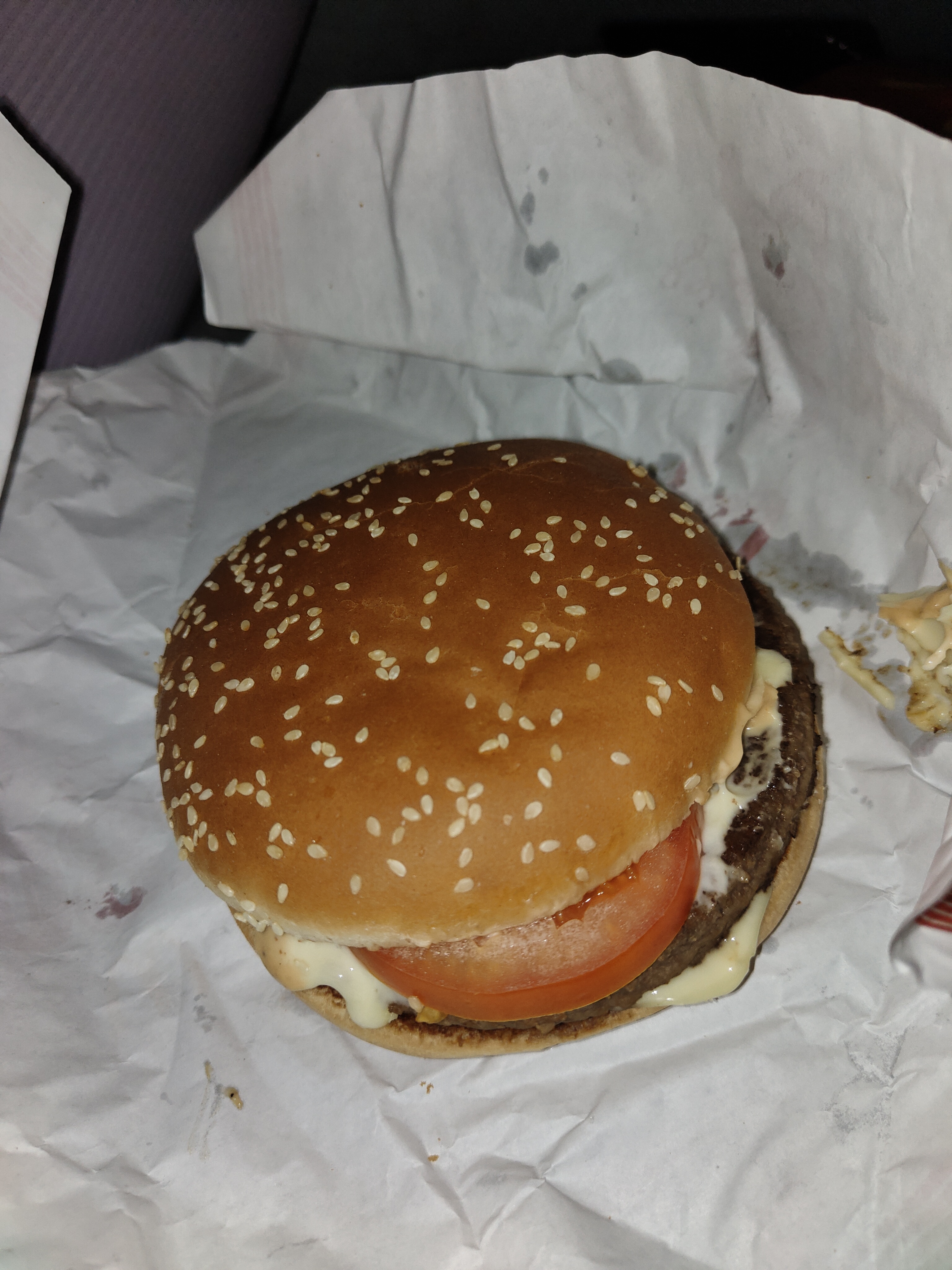 Un Big tasty de ce que je sache c'est : du pain, de la viande, des oignons, la sauce du burger, de la salade, des tomates... J'ai récupérer au drive et ouvert chez moi un hamburger avec 2 tranches de viandes.. Merci Macdonald pour vos services de qualités 👍