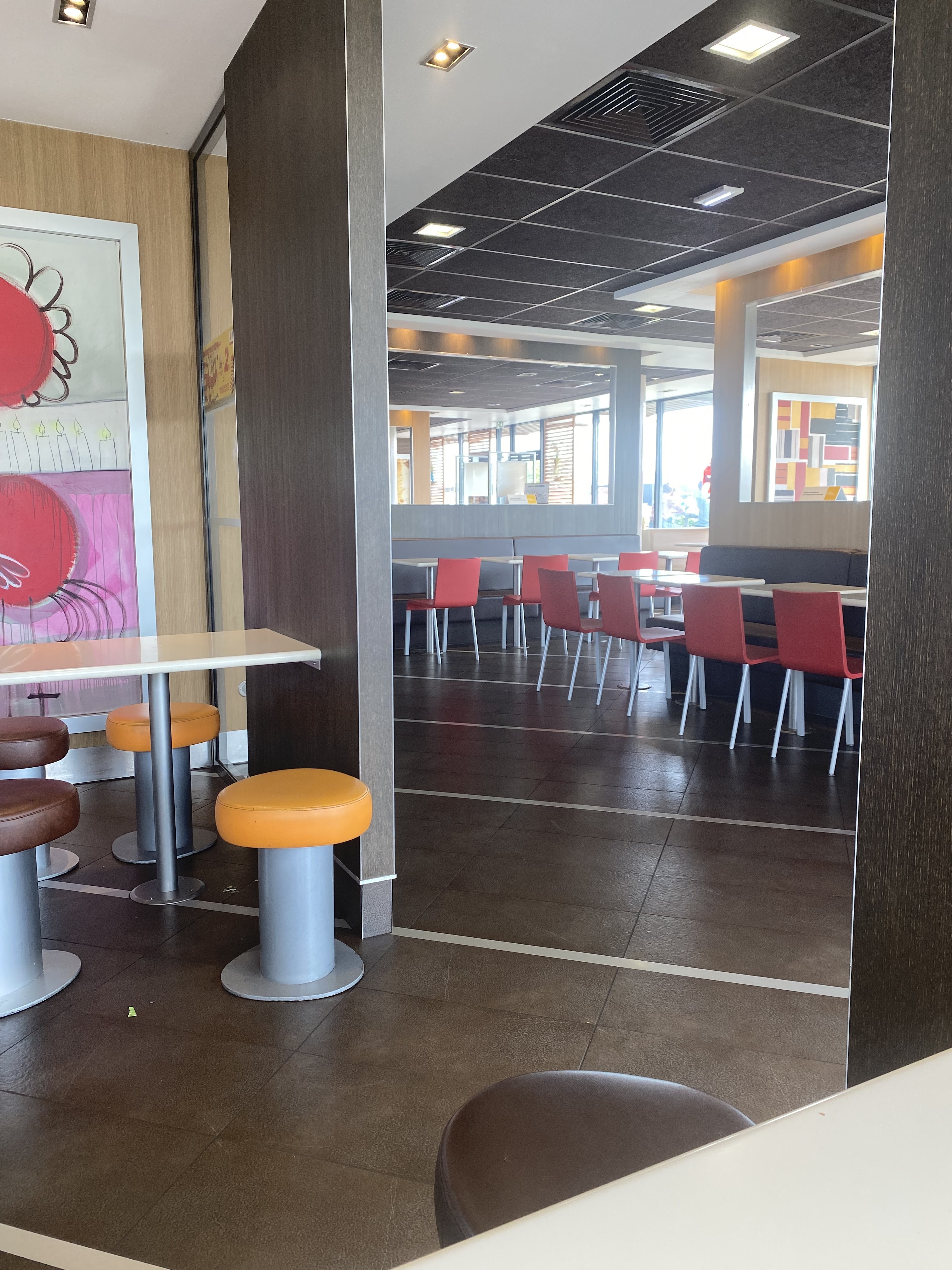 Je viens régulièrement dans ce McDo s’il vous plaît faite un effort sur la propreté le sol colle de partout sans exception les tables c’est pas fort mieux. Je peut comprendre que certaines personnes n’ont pas de respect mais quand même il y as du monde en personnels occuper à rire tous ensemble cest pas normal. Revoyer vos procédure de nettoyage toutes les table sont frotter avec la même lavette bien grasse rien d’étonnant. Il y avais même des attention sols glissant pour des boissons renverser, pourquoi ne pas nettoyer tout de suite ??
