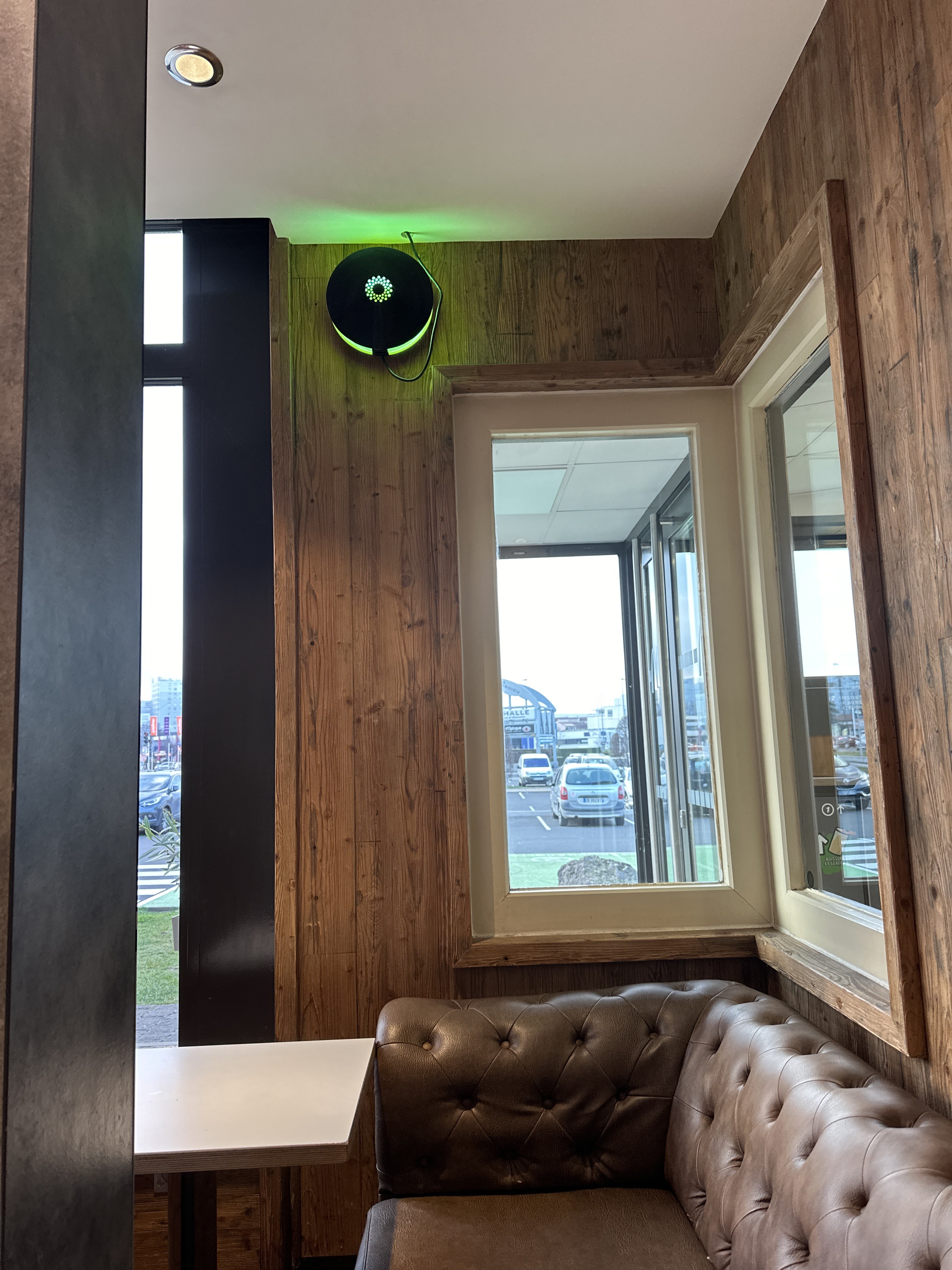 Grand, extérieur sympa et intérieur très tendance. Personnel agréable. Pour les enfants, une pièce complètement dédiée à l'étage mais avec accès par l'extérieur. Bornes de commandes très accessibles. Service assez rapide.