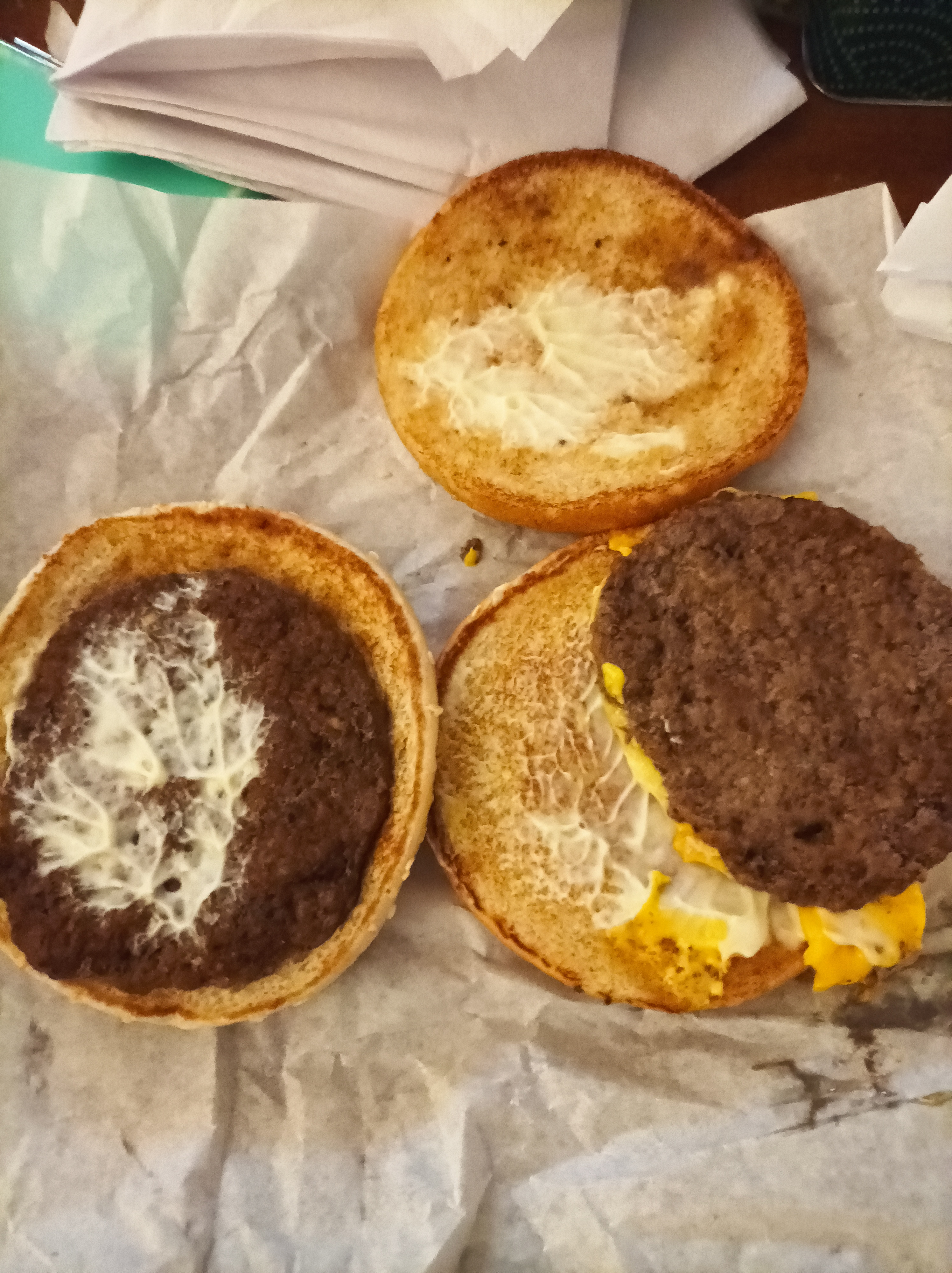 Voilà plusieurs fois que je commande à emporter et que le burger est fait à l'arrache (il manque un ou des ingrédients, la présentation est dégueulasse), ou pire, qu'il me manque une partie de la commande (pourtant payée en totalité). Vous trouverez en photo le Big Mac acheté ce soir et encore une fois, c'est l'arnaque: deux steacks, une tranche de fromage et une noix de mayonnaise, c'est tout. Le pire Mac Do que j'ai fréquenté !!!