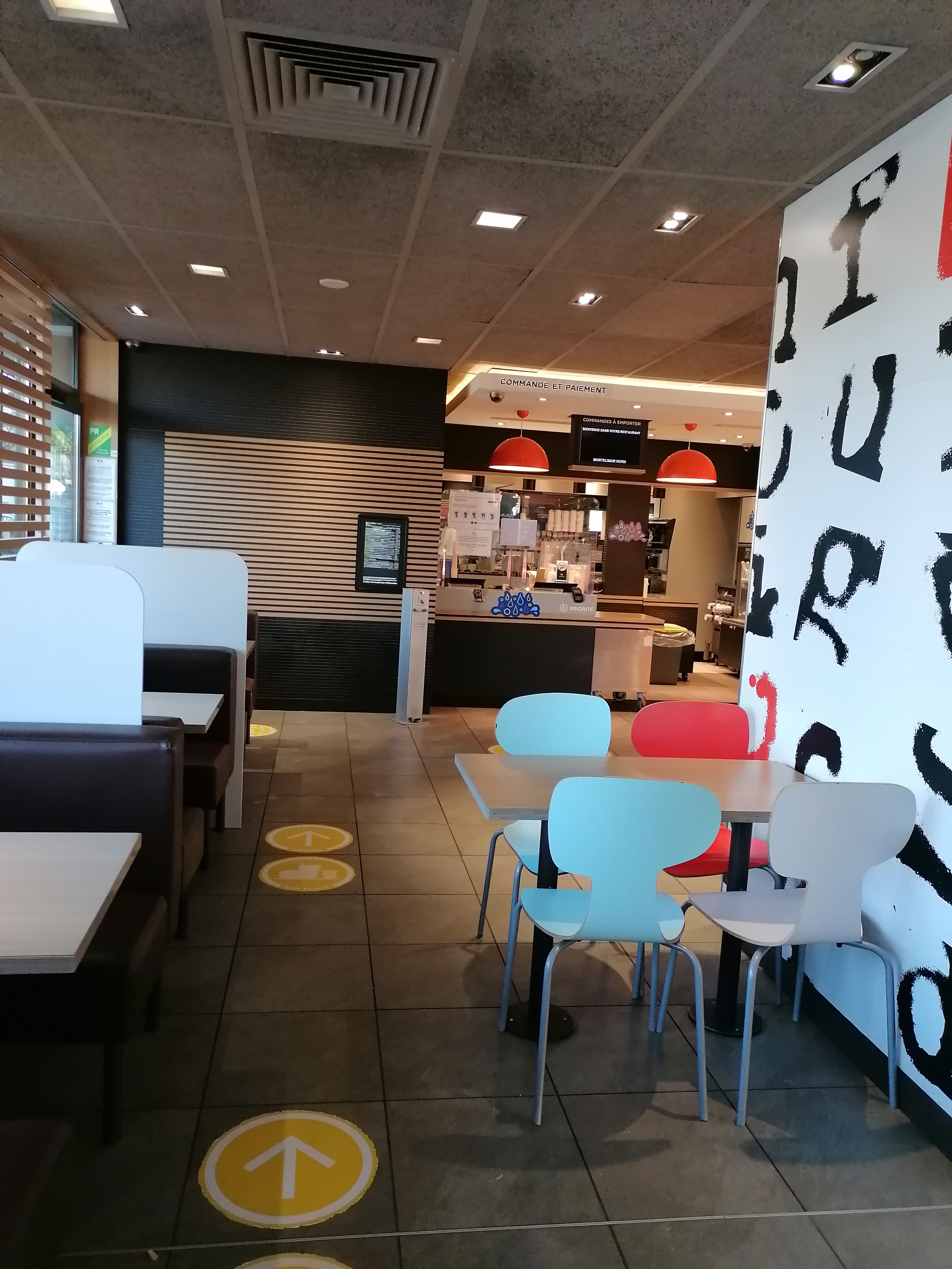 Macdonald correct. Contrôle d'accès et guide pour respect des règles sanitaires dès l'entrée de l'établissement très bien effectué. Personnel souriant et très courtois. Lieu propre.(toilette aussi) Repas chaud. Rien à dire sur ce macdo.
