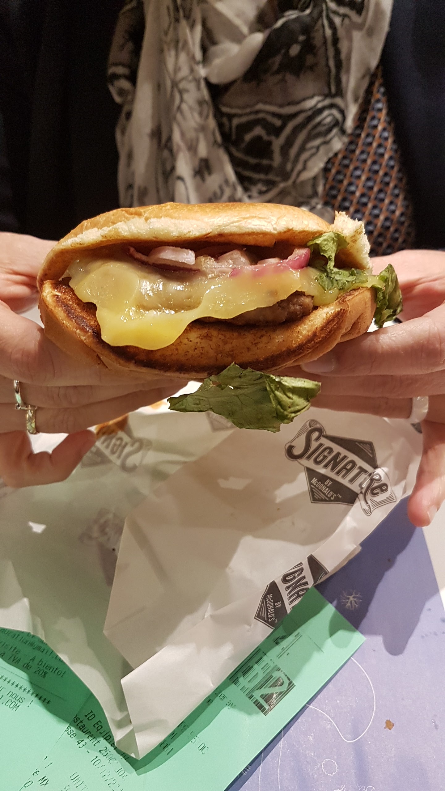 Honnêtement, une déception sans nom. On voit que les photos mises sur leur site, du McRancher, sont vraiment des photos truquées. Parce qu'un sandwich qui est supposé être aussi gros qu'un big mac, on s'attend à ne plus avoir faim. Et non, évidemment, le sandwich est plus petit qu'un mcfirst. Il faisait la taille d'un hamburger. Le bacon doit aussi être limité en quantité parce que c'est à peine si on le voyait tellement il y avait de ketchup. Vraiment, revoyez votre façon de gérer car payer plus de 25€ et repartir la faim au ventre... Vous faites honte à la marque.