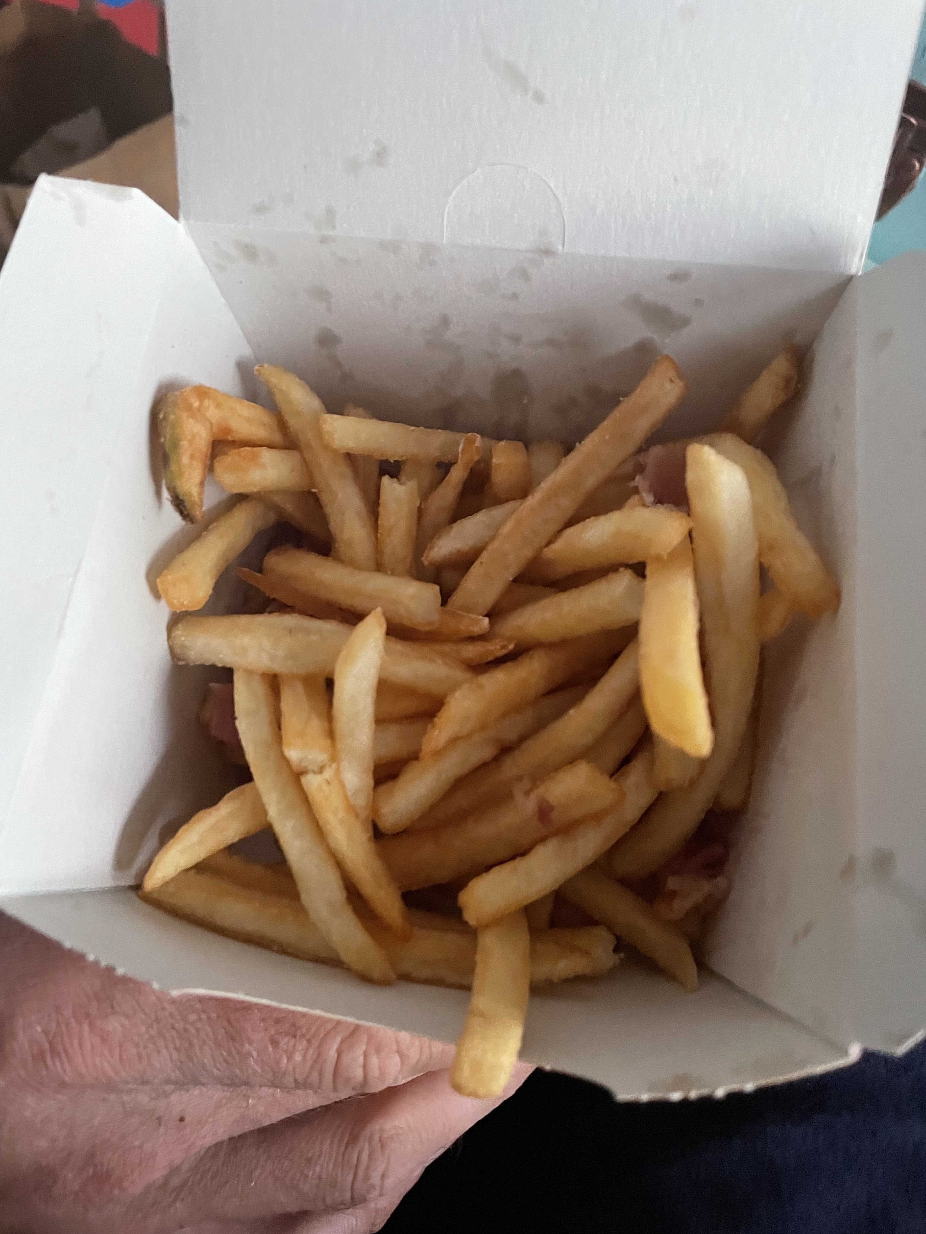 Des grandes frites à moitié remplies ... Un personnel avec le masque sous le nez à moitié de la bouche, des clients qui se baladent sans masque... Bof bof bof
