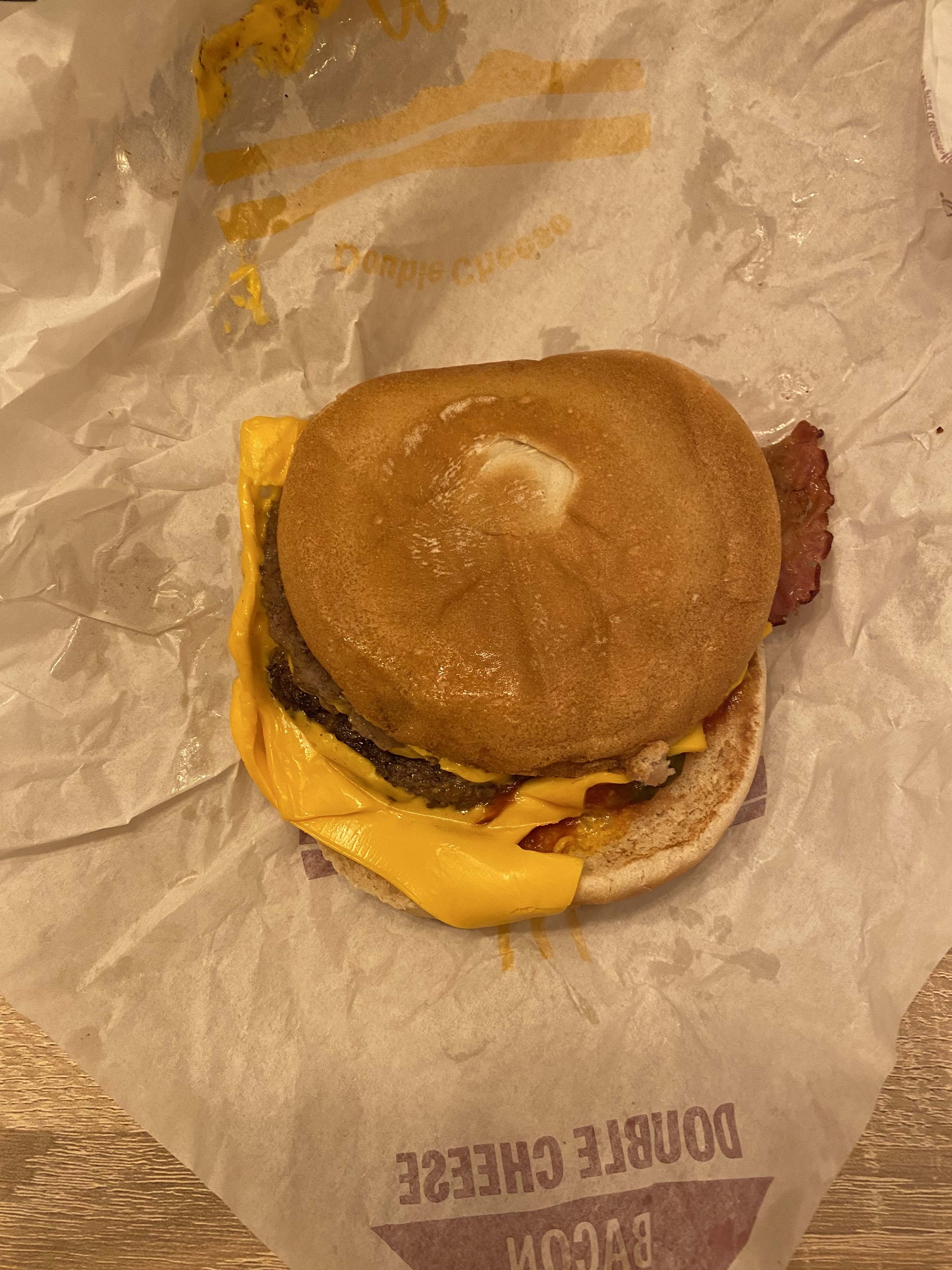 Avoir un double cheese bacon aussi plat qu'un croq mc do... Avec la moitié de la sauce dans l'emballage. Faudrait arrêter d'abuser.