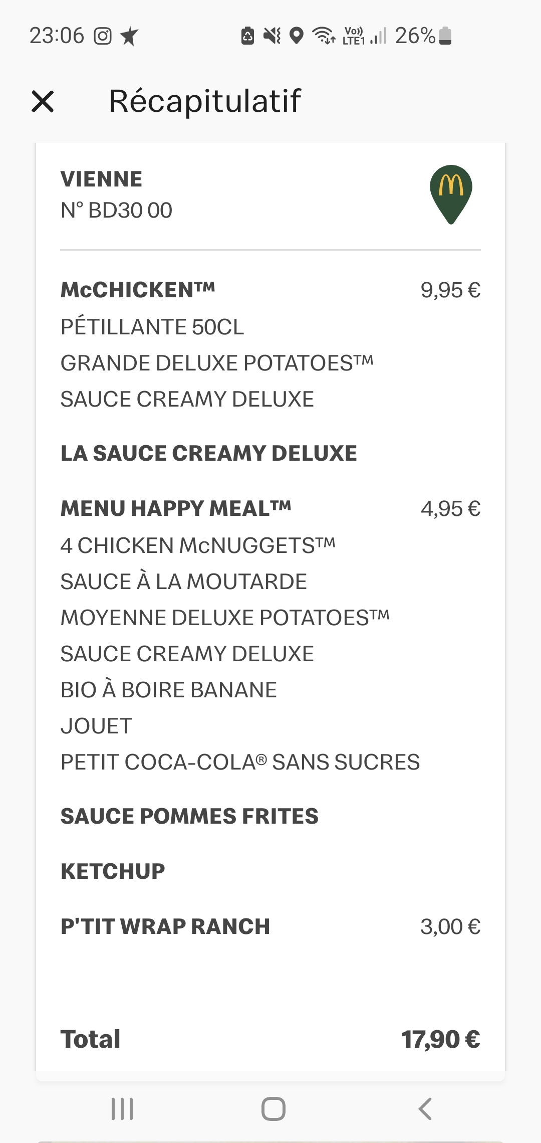 Bon repas au mc do en famille super service merci mention spéciale pour Hicham