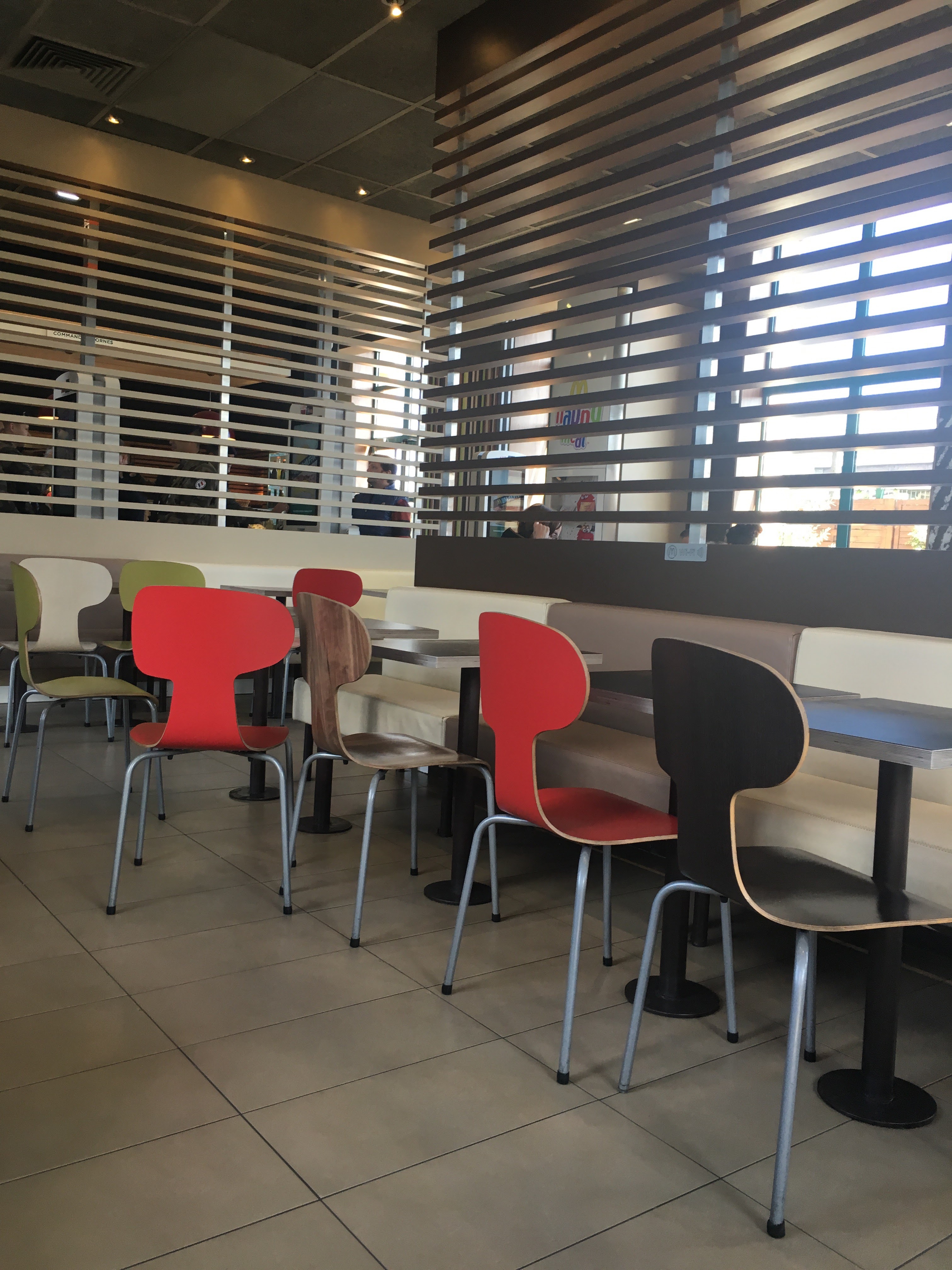 Un super Mc Do de l’extérieur ! Mais, à l’intérieur, toujours impossible d’y manger, il y fait toujours froid ! En été, clim à fond ! En hiver, les gens courageux avec leur veste à table !!!