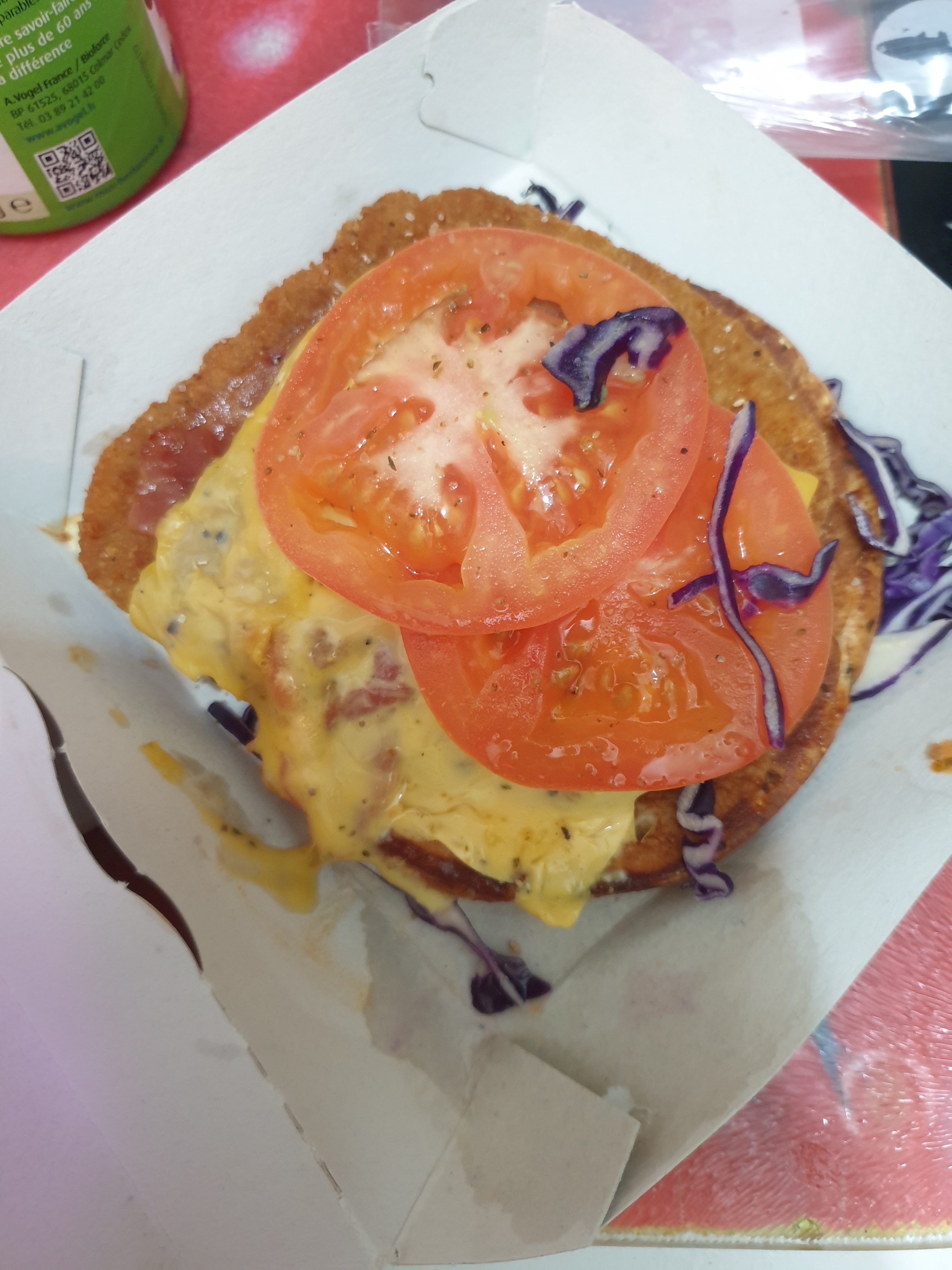 Tout était froid . Les frites son dans une boîte en rouge plastique . Le coca dans un grand verre en plastique transparent. une horreur . En gros ça ne devrait pas exister .c'est sensé être jetable et bien non c'est réutilisable.
