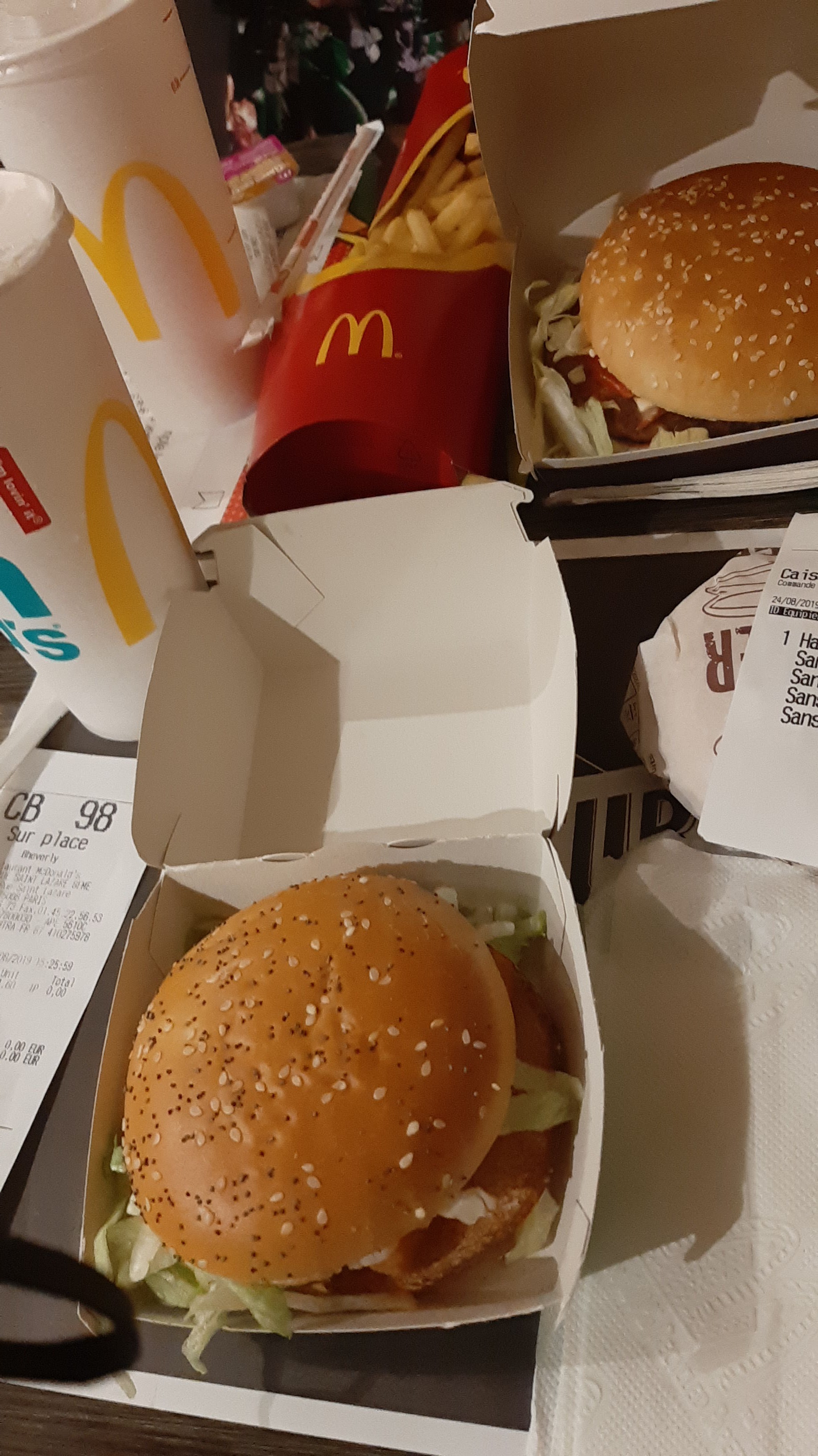 Très mauvaise expérience ! J'ai commandé un menu Maxi McFirst au poisson à emporter. J'ai pris le temps de vérifier que tous les produits étaient bien présents à réception. Quelle ne fût pas ma surprise de découvrir un Mcfirst au bœuf lors du déballage du sandwich. Ayant déjà pris mon bus je ne pouvais pas revenir sur mes pas. C'est inadmissible !