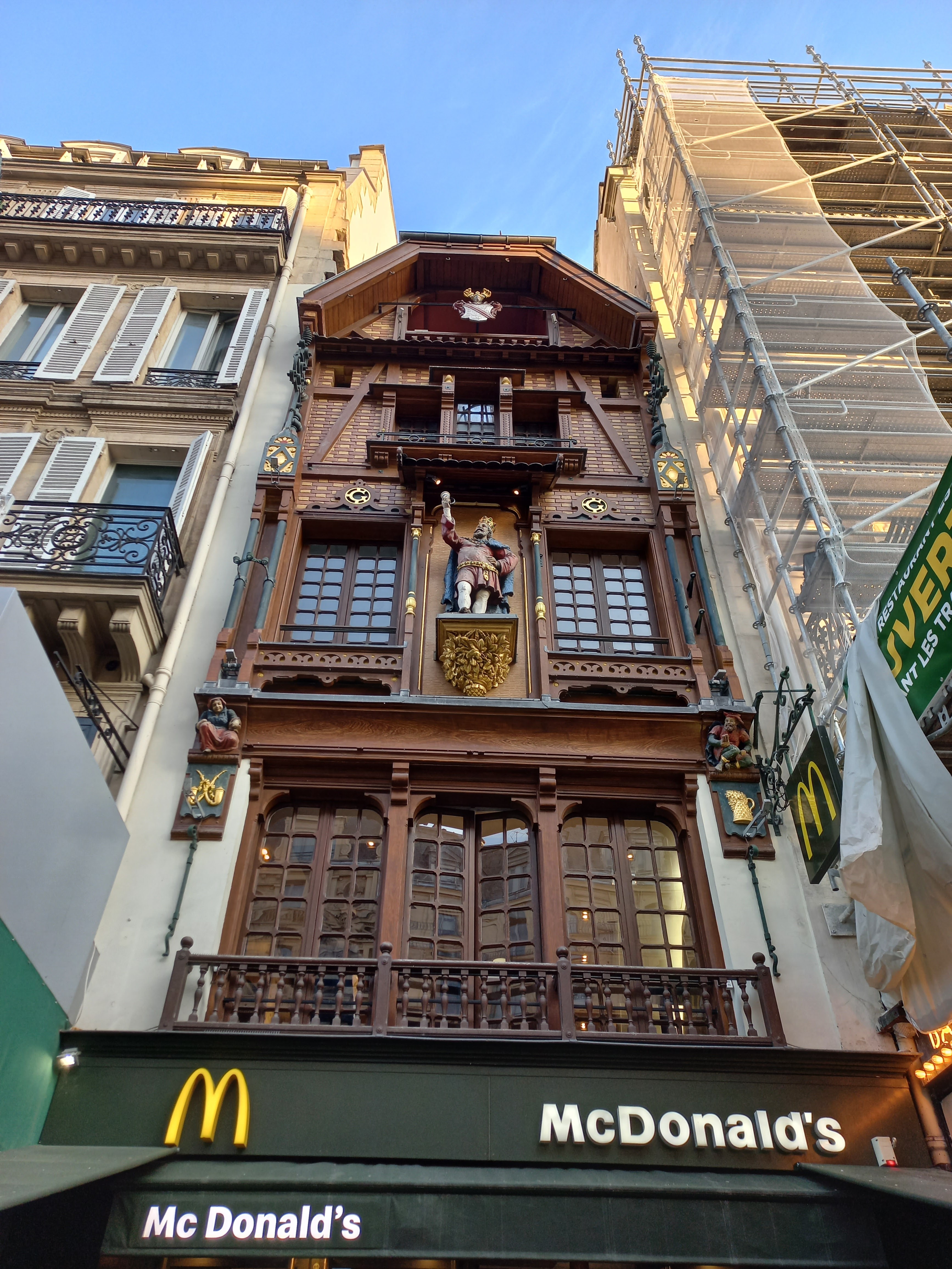Un restaurant atypique dont le bâtiment est classé aux monuments historiques : une belle façade et un intérieur qui préserve son histoire (jusqu'à la statue de cigogne sur la cheminée du toit), les lieux ont connus une autre histoire (Au Roi de la Bière) avant l'arrivée de ce Mac Donald's. Concernant le service, il est réactif et cordial mais je déplore que les petites attentions comme les serviettes à joindre à la commande soient oubliées... De plus, les 2 hamburgers commandés étaient froids... C'est vraiment dommage !