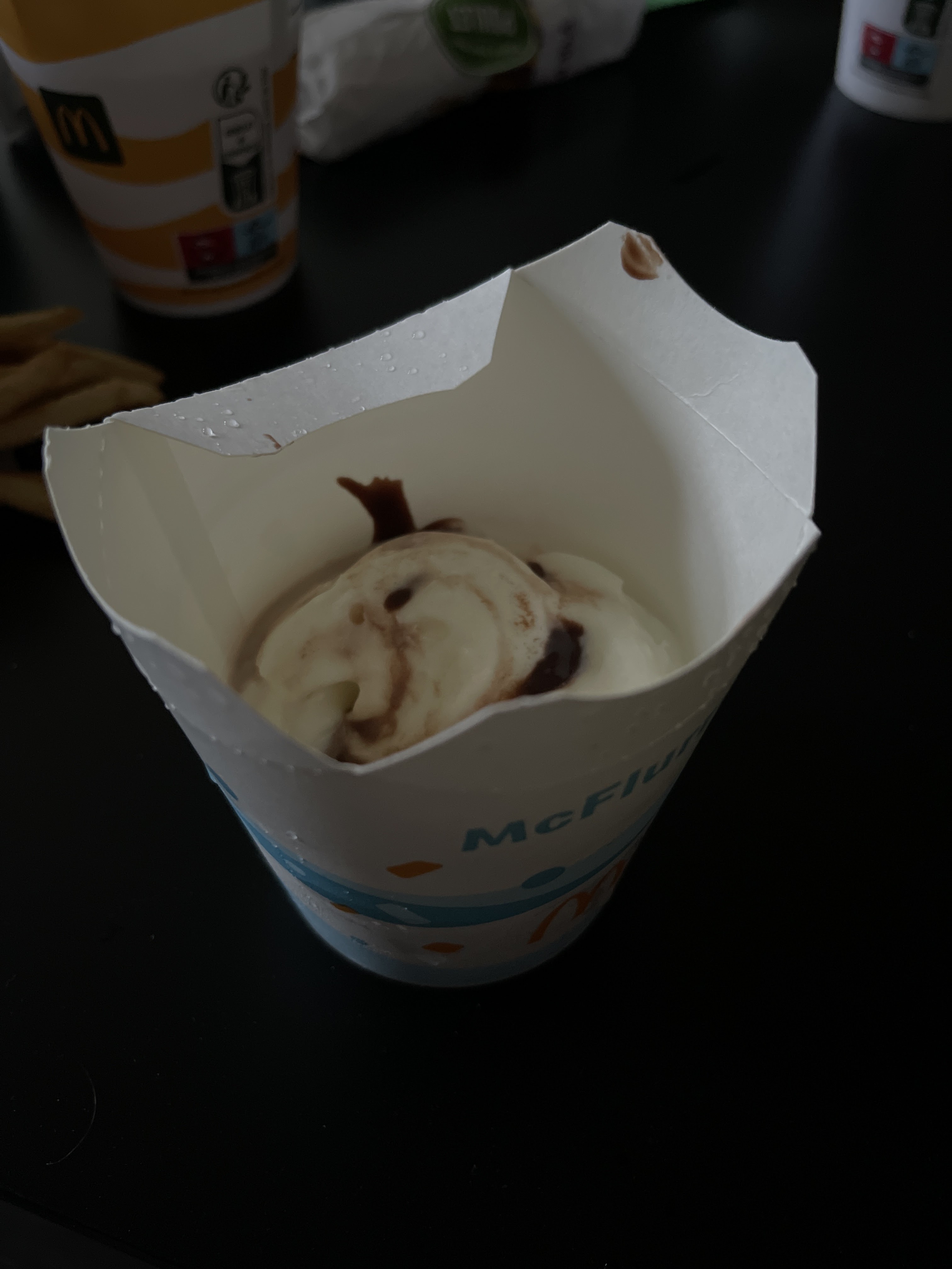 Passés pour prendre une glace... un MacFlurry rempli à moitié.... Je suis allé voir au comptoir, Manager intraitable, soit-disant j'avais déjà de la chance qu'il soit rempli ainsi.... c'est ça .... Dans d'autres endroits, largement mieux remplis... Pour 4,15€ une glace y'a un moment faut pas abuser.... Comme d'hab.... petites économies de radins alors que vos bénefs sont énormes... Nous ne venions déjà plus manger vos sandwichs devenus ridiculement petits... les glaces, c'est maintenant pareil.. Tchao MacArnaque....