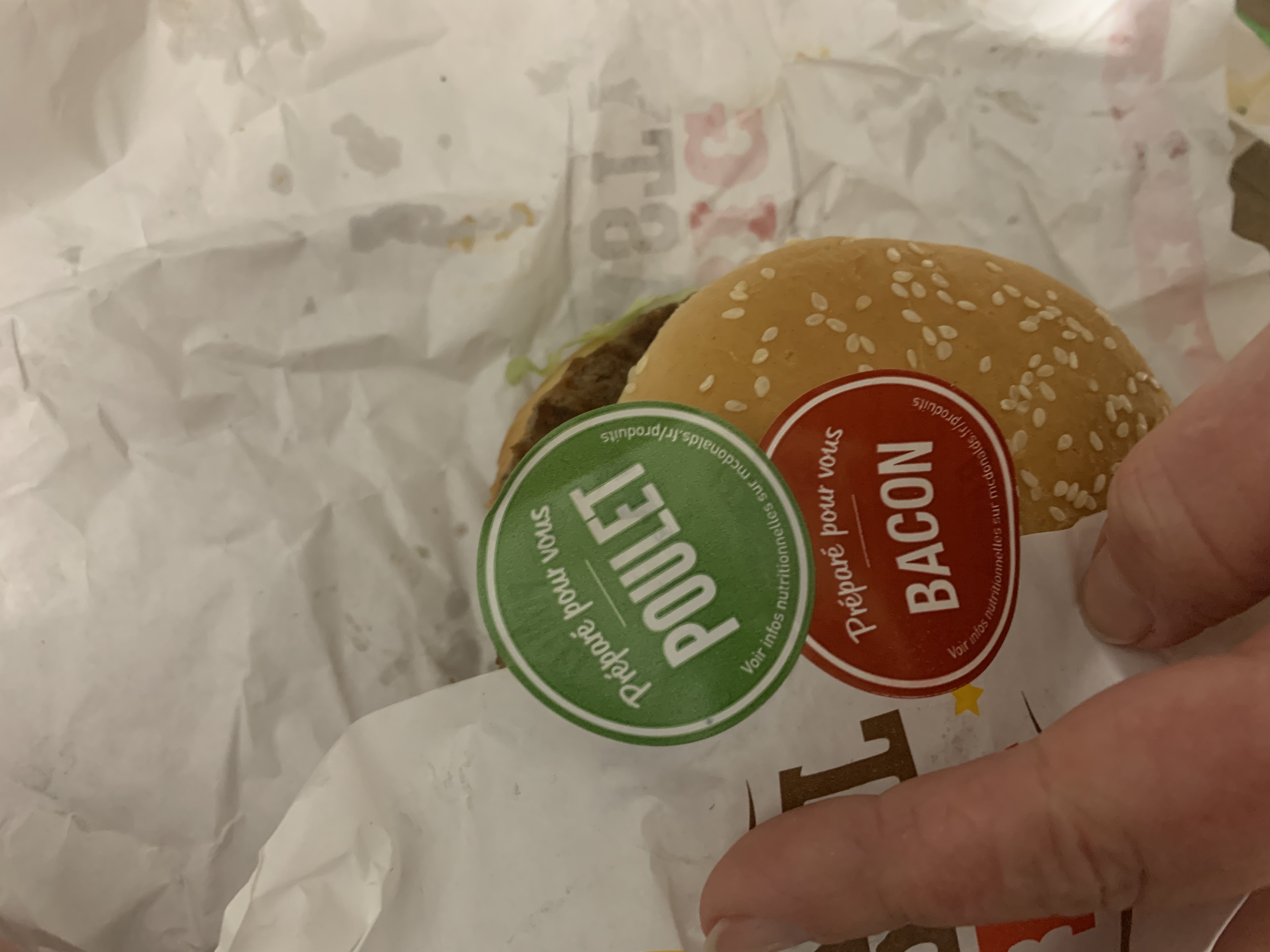 J’ai été très mécontente ce jour de découvrir que ma commande n’était pas complète à cause de plusieurs erreurs de commande… Malheureusement je m’en suis rendu compte au fur et à mesure de mon repas chez moi. Tout d’abord comme vous pouvez le voir sur la photo du ticket de caisse ci-joint je devais avoir un wrap au chèvre qui c’est avéré en cours de route être un wrap au poulet… malheureusement pensant que c’était la seule erreur je n’ai pas pris de photos… Ensuite j’ai eu la stupéfaction de découvrir que mon chicken Big Tasty Bacon comme marqué sur l’emballage « au poulet » c’était transformé en Big Tasty Bacon au bœuf…. Je n’ai donc pas du tout apprécié mon repas et j’ose espérer qu’un geste commercial sera fait. Étant une cliente régulière du MacDonald’s D’Angoulins je ne comprend pas comment cela à pu avoir lieu et ne parlant pas des deux CBO qui à mon sens on été réchauffer ou recuit pour avoir du pain à burger sec et dure, et de la sauce ketchups commander mais pourtant manquante. Je peux comprendre beaucoup de choses mais lors de ma venue, je n’ai pas vu le personnels débordés au vu du peu de clients lors de ma venu.