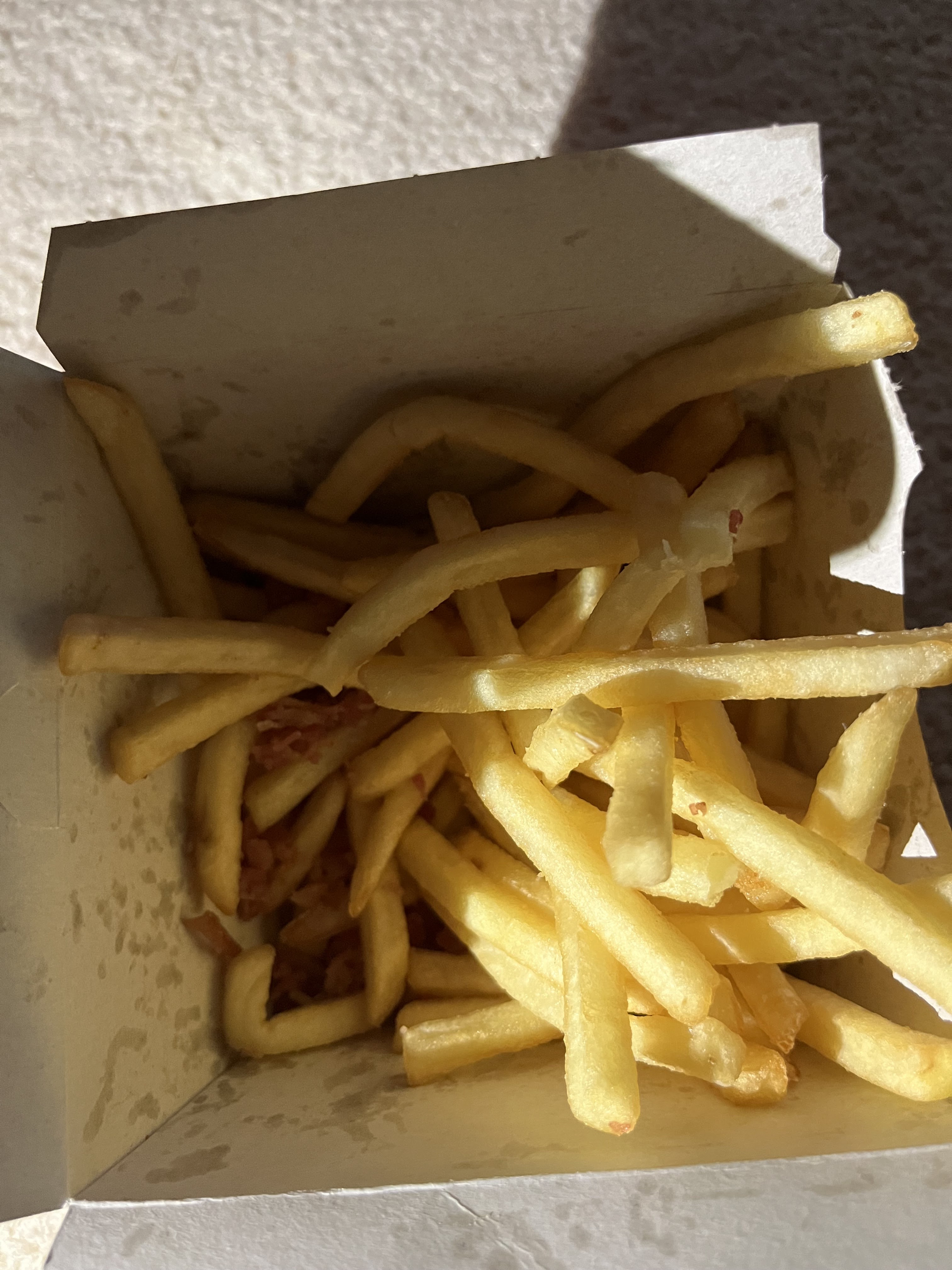 Il me les brises! A chaque fois en commande à emporter on commande des grandes frites et ont ce retrouve avec autant que si on avais pris une petite! Une fois fait la remarque et sa sourit, rajoute des frite et ne s’excuse pas!