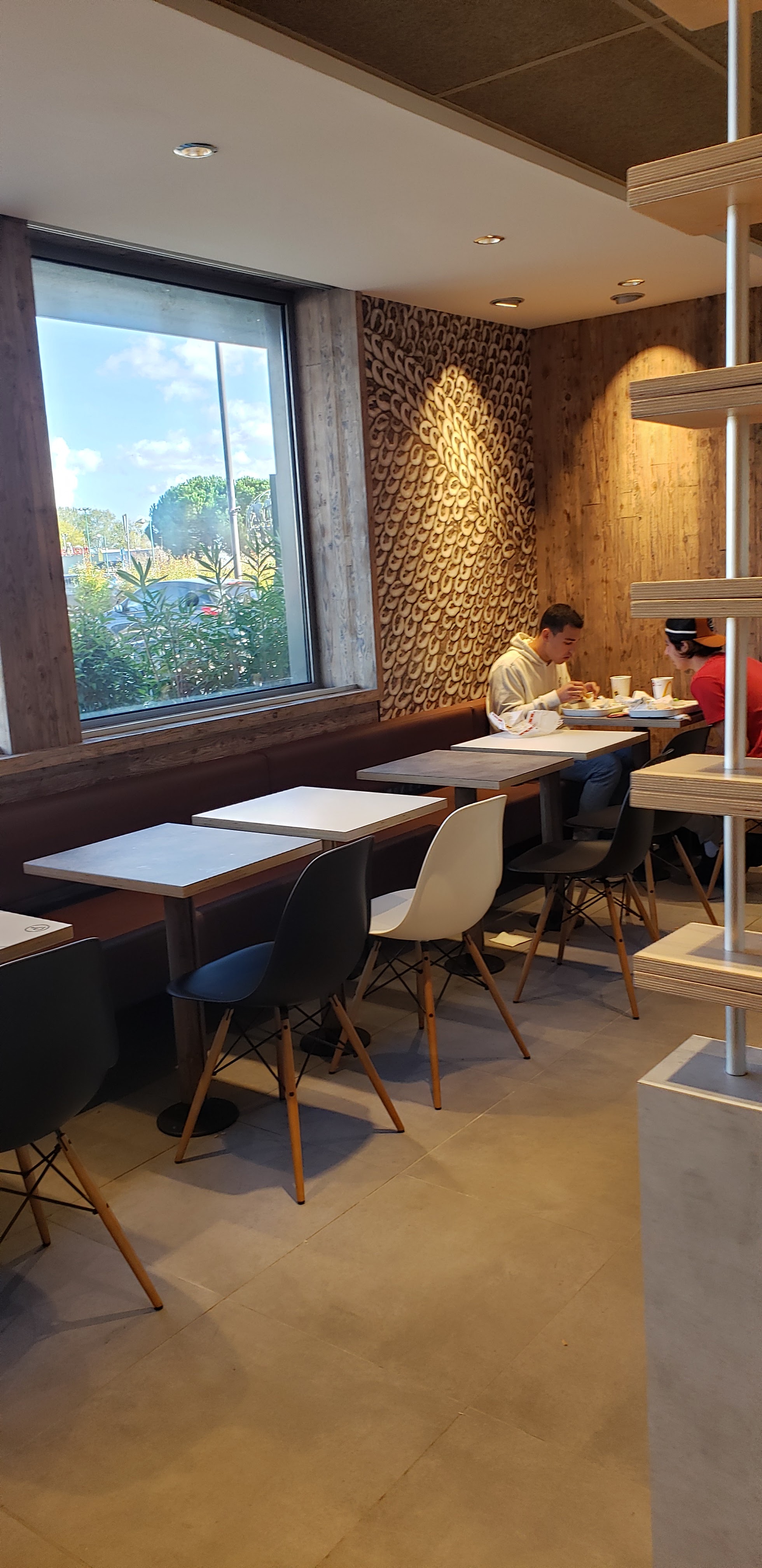 Si vous y allez en heures de pointe vous attendez y a trop de monde et si vous y allez après en heur normal vous attendez quand même car y a personne pour vous servir , la borne click in collecte ne marche jamais donc autant faire la queue directement en fin j'irai mangé autre chose