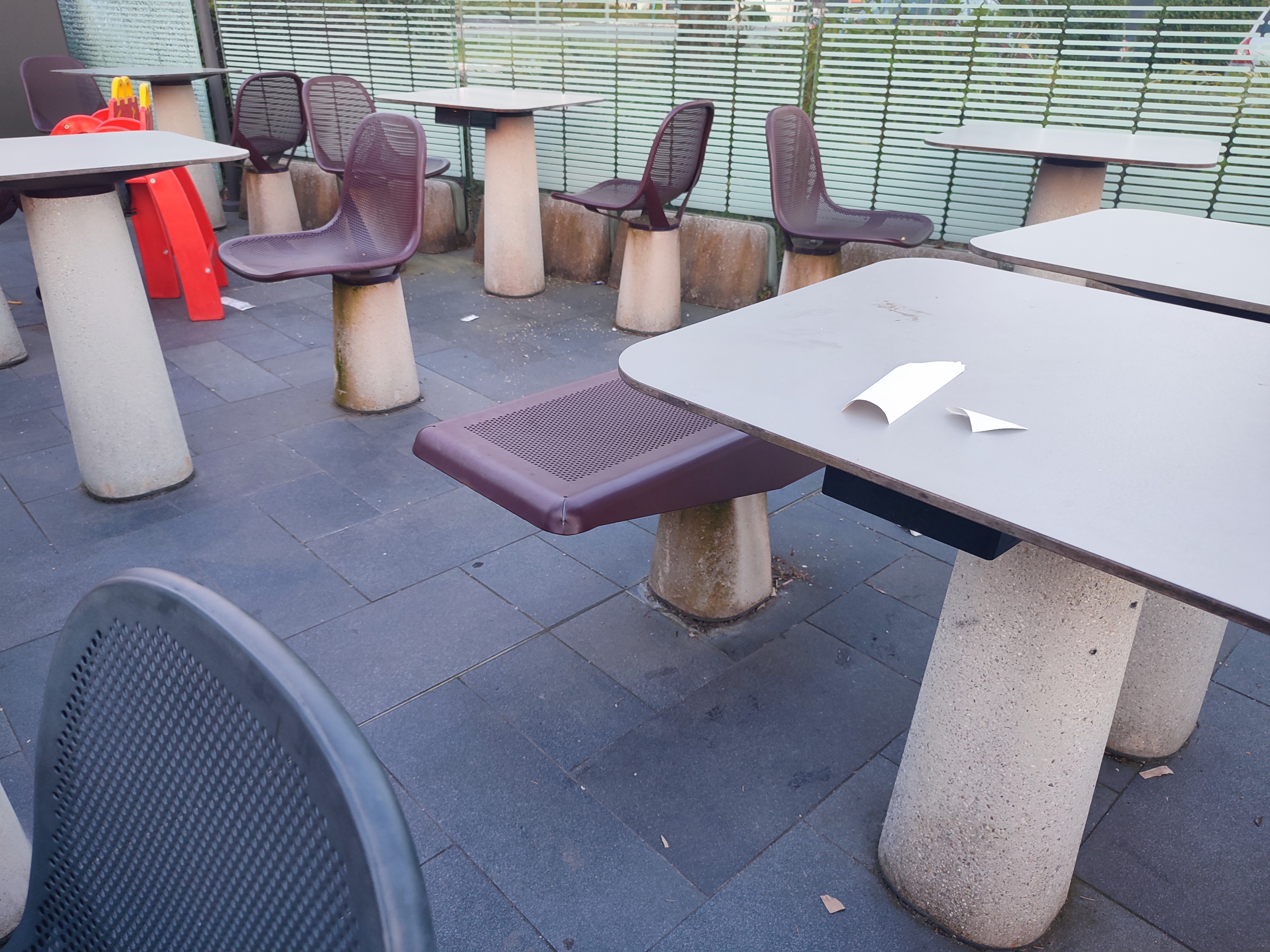 macdo insalubre, qualité des locaux extérieur déplorable, les rats se promènent sous les tables pendant qu’on mange! Je ne recommande pas