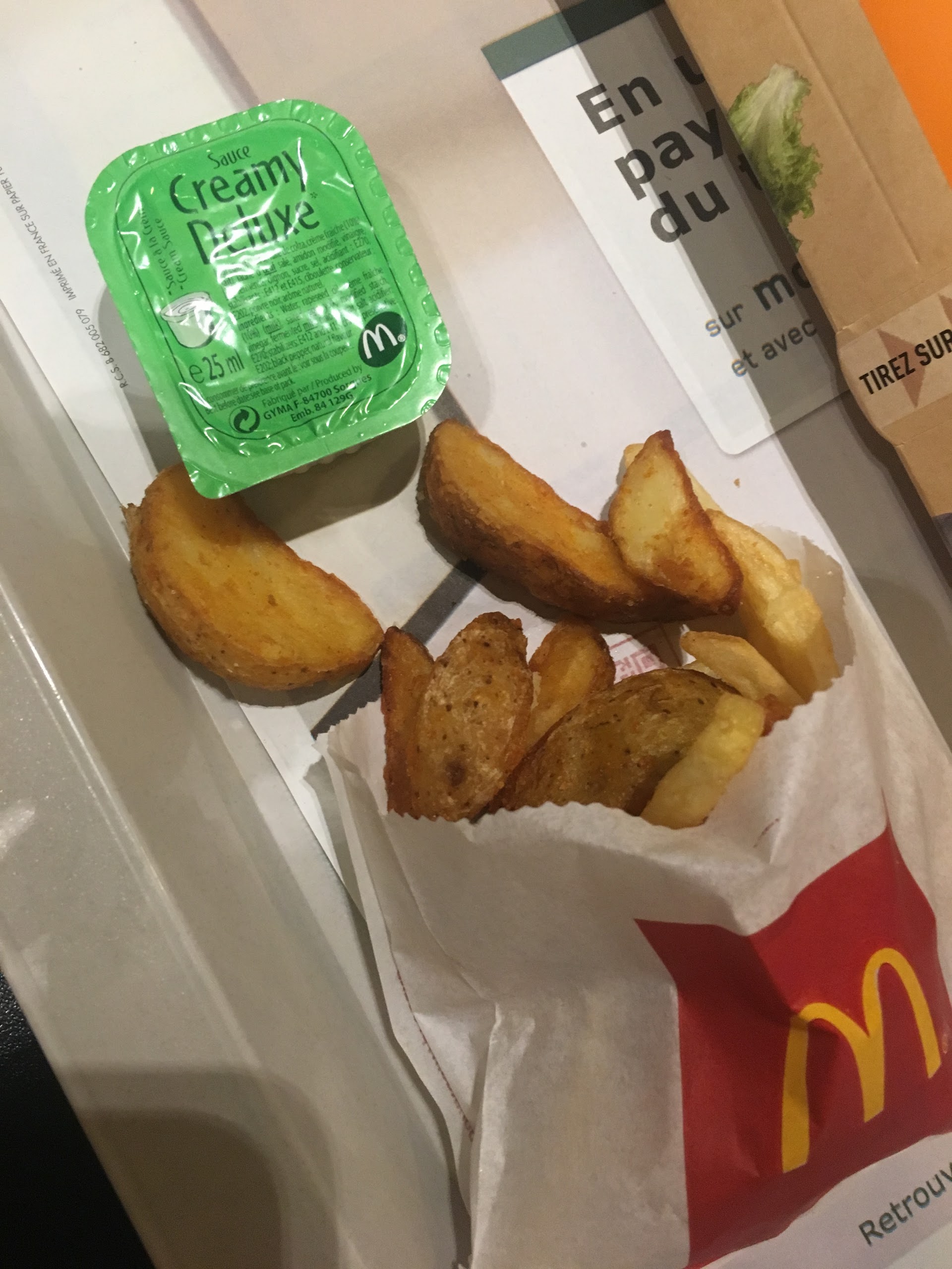 Ce jour, le 2 décembre nous avons passé commande d'un click and collect et les potetos étaient froides et dures comme si elles étaient du midi ou de la veille, c'était pas hyper appréciable...