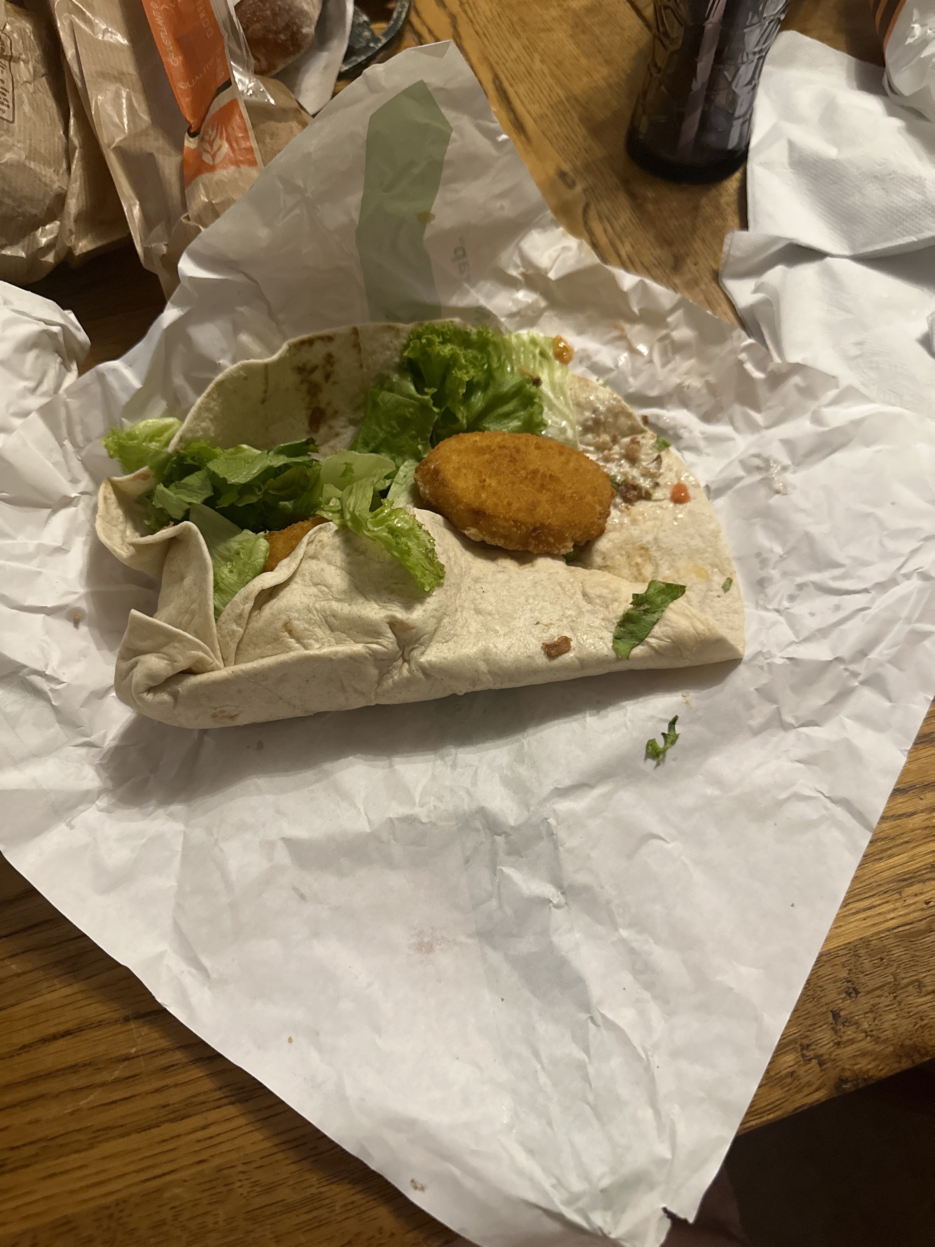 Je suis une cliente régulière d'habitude tout va bien mais aujourd'hui très déçu j'ai pris un wrap poulet la galette est dur mon wrap est cassé bref pas top du tout vraiment déçu